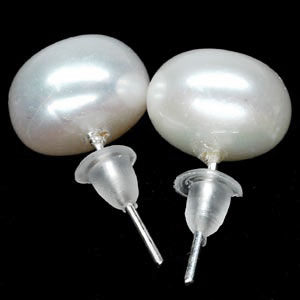 14.47 Ct. Charming Natural White Pearl Silver Earrings