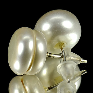 Unheated 12.88 Ct. Natural White Pearl Silver Earring