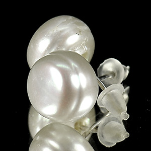Unheated 13.70 Ct. Natural White Pearl Silver Earring From Thailand