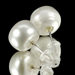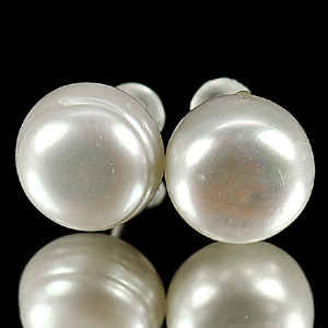13.49 Ct. Natural White Pearl Round Cabochon Silver Earring