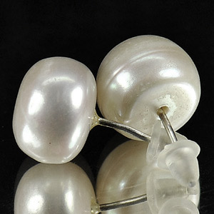 13.84 Ct. Cute Natural White Pearl Silver Earrings Unheated