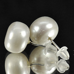 13.27 Ct. Nice Natural White Pearl Silver Earring Unheated Thailand