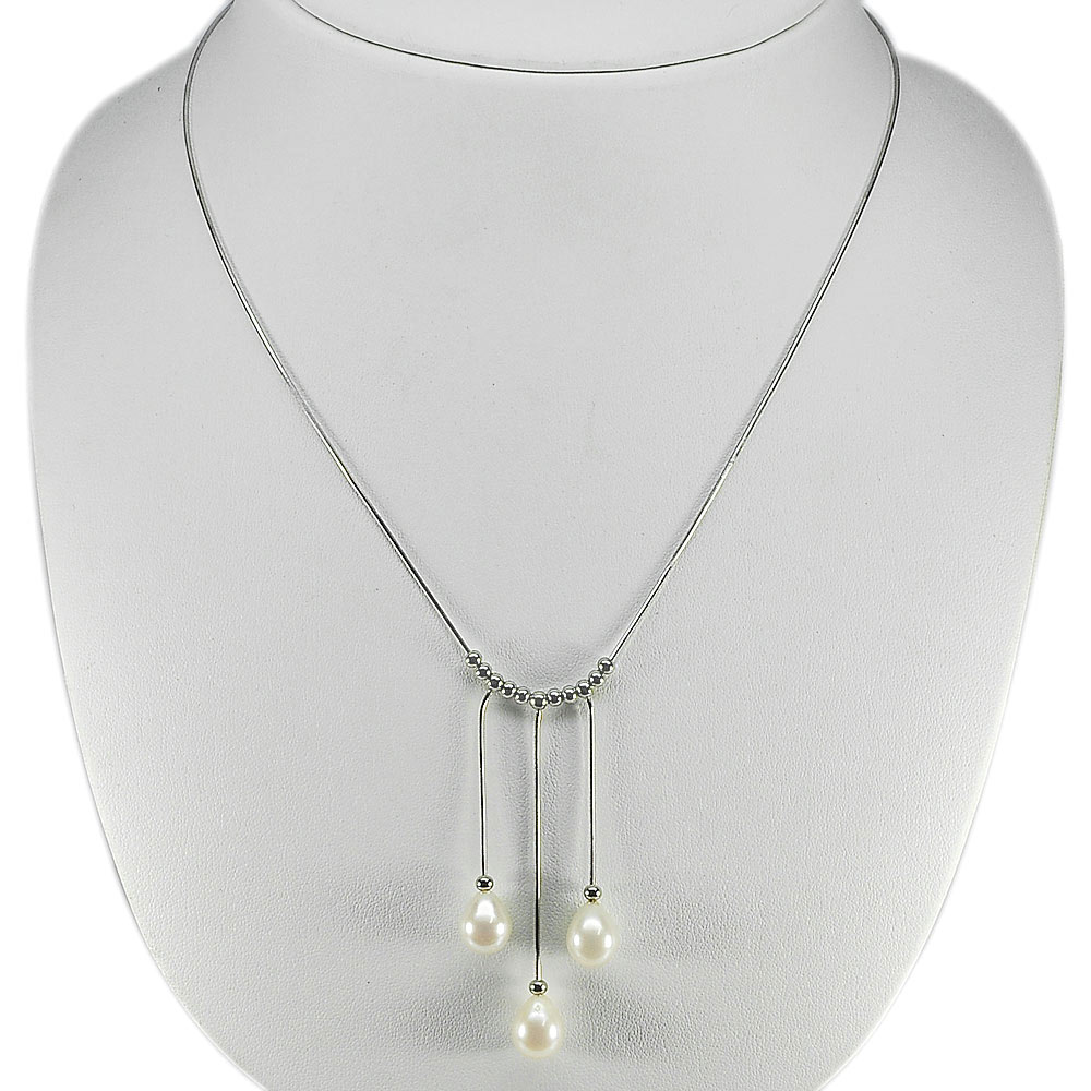6.59 G. Natural White Pearl Real 925 Sterling Silver Necklace Length 20 Inch.