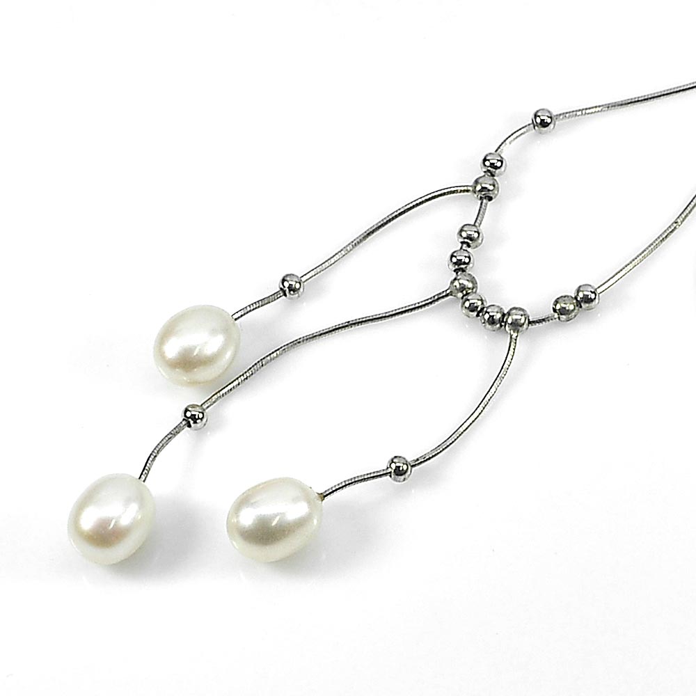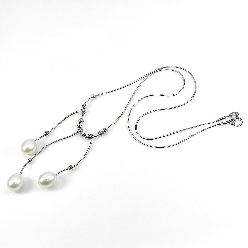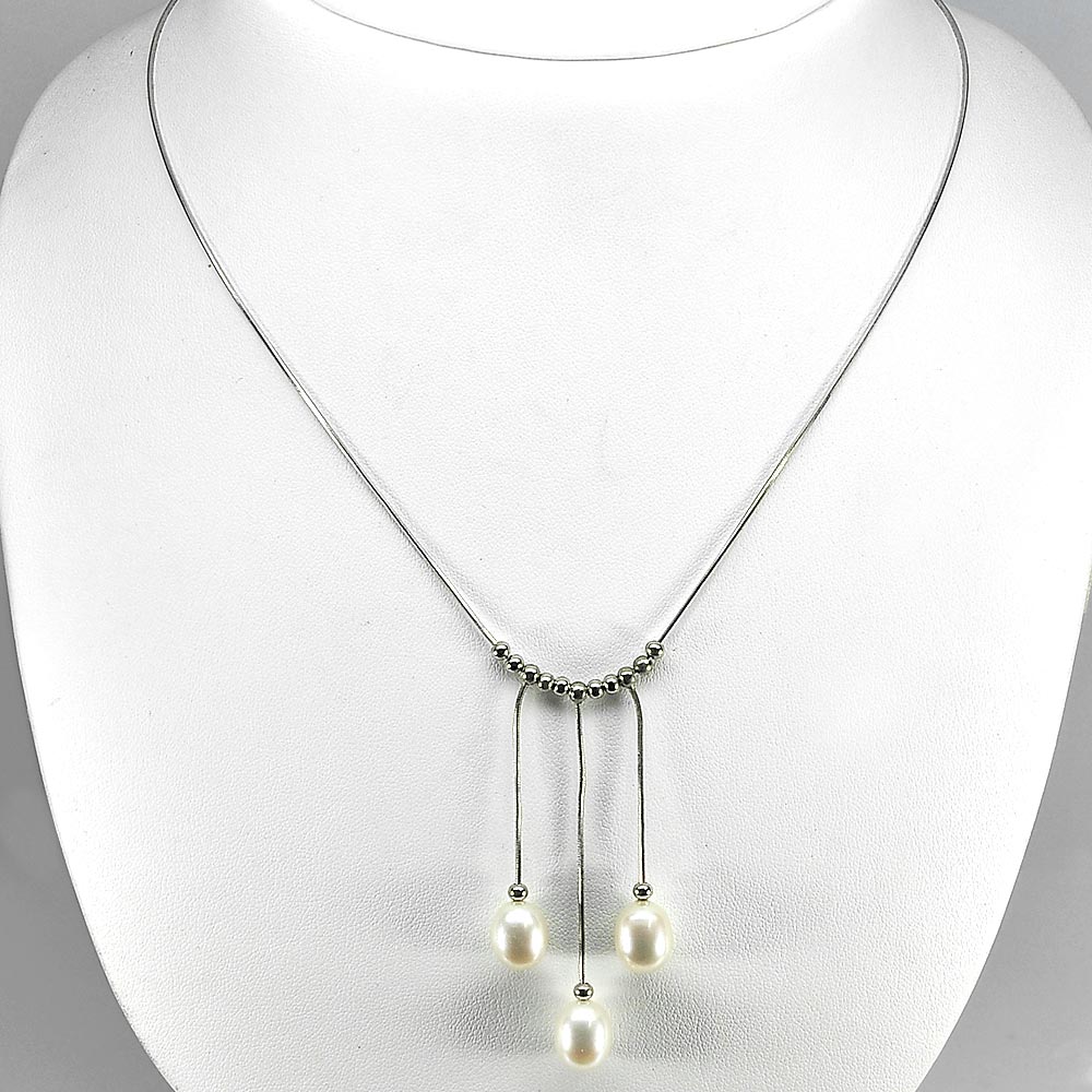 7.04 G. Natural White Pearl Real 925 Sterling Silver Necklace Length 20 Inch.