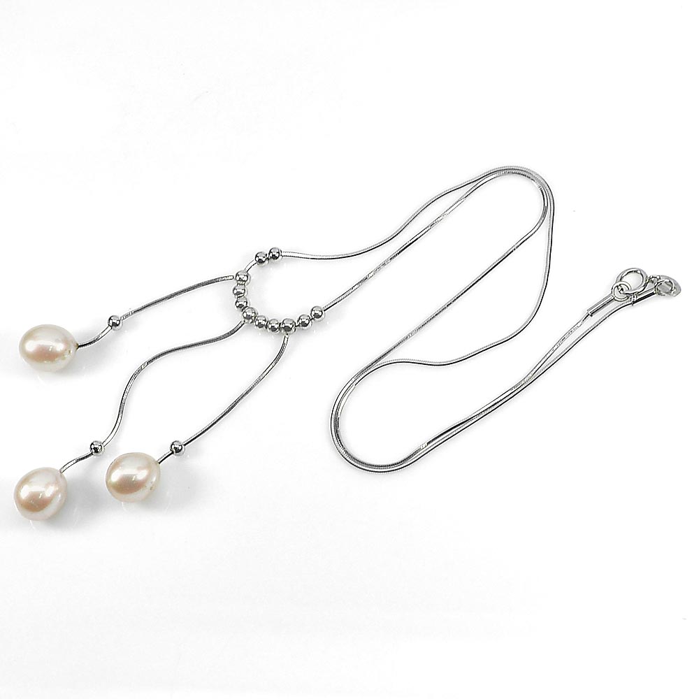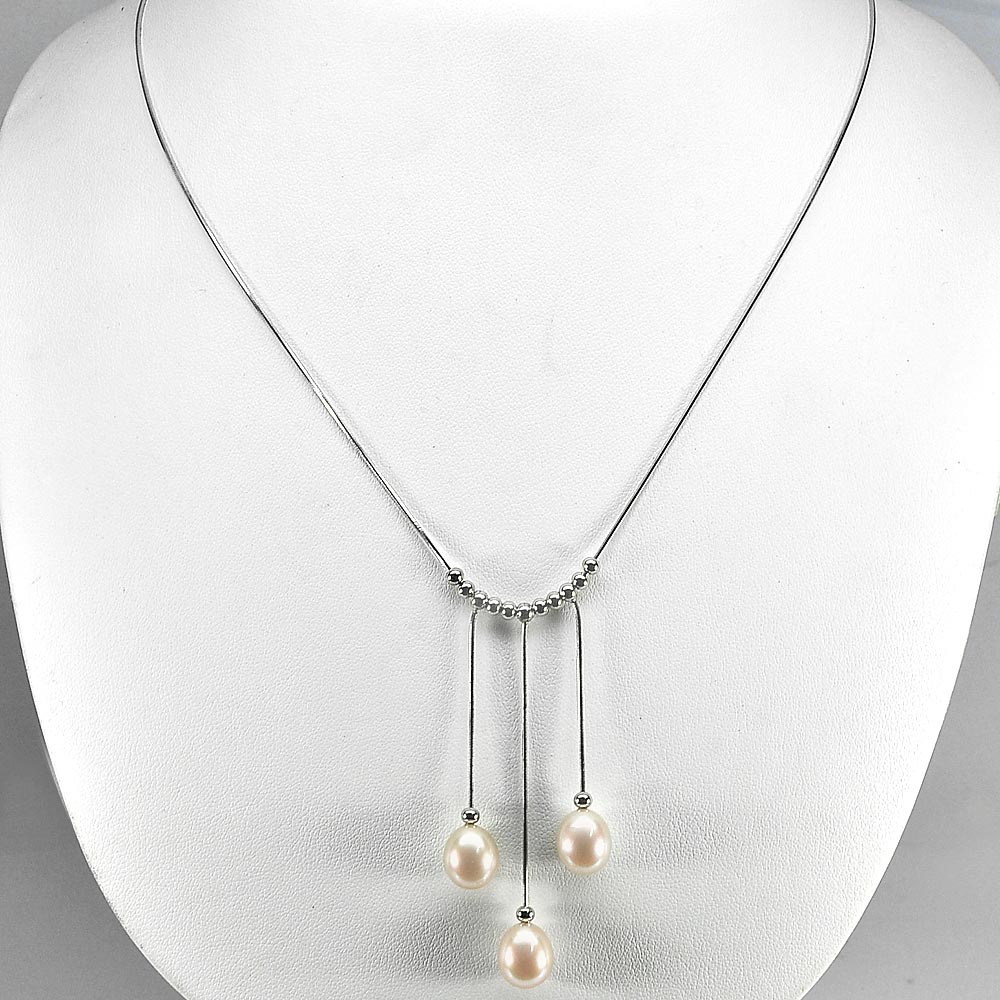 7.10 G. Natural Pink Orange Pearl 925 Sterling Silver Necklace Length 20 Inch.