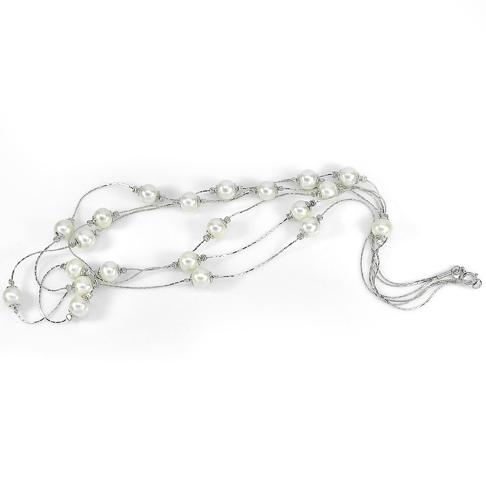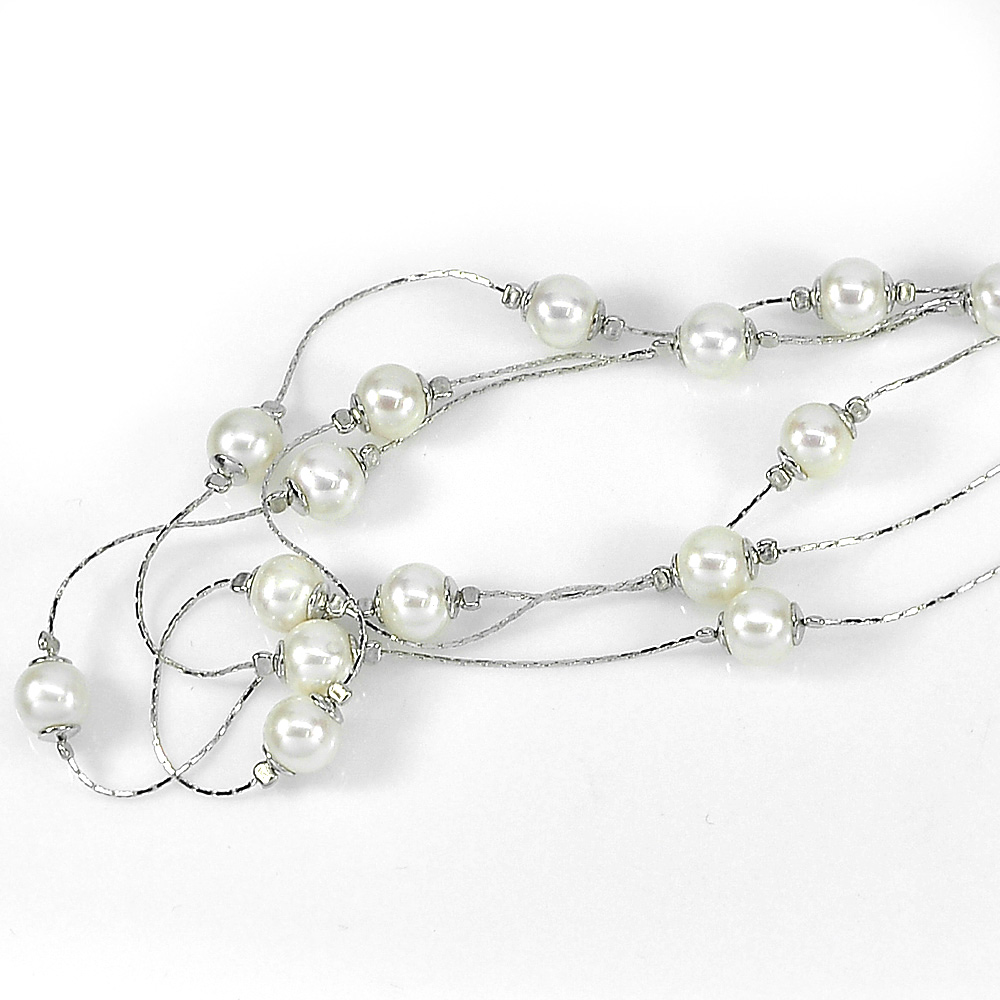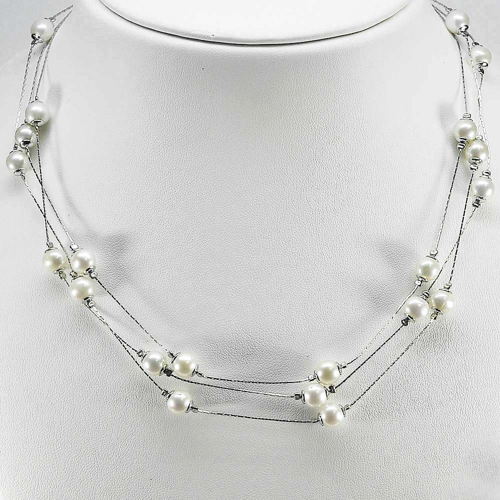 15.71 G. Natural Round White Pearl 925 Sterling Silver Necklace Length 16 Inch.