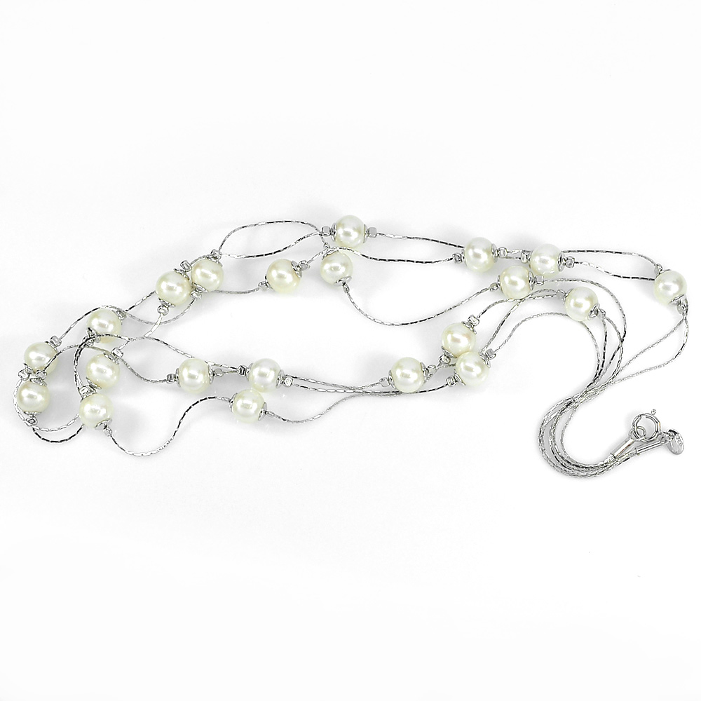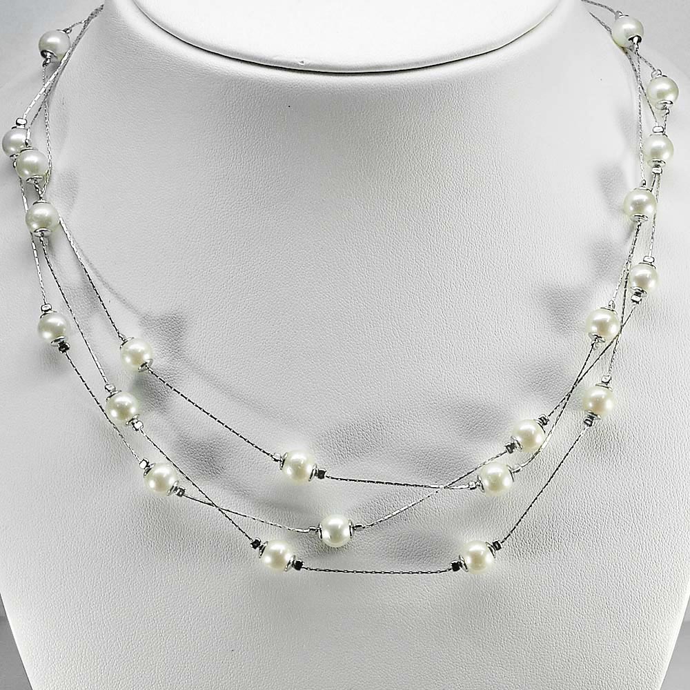 15.93 G. Natural White Pearl Real 925 Sterling Silver Necklace Length 16 Inch.