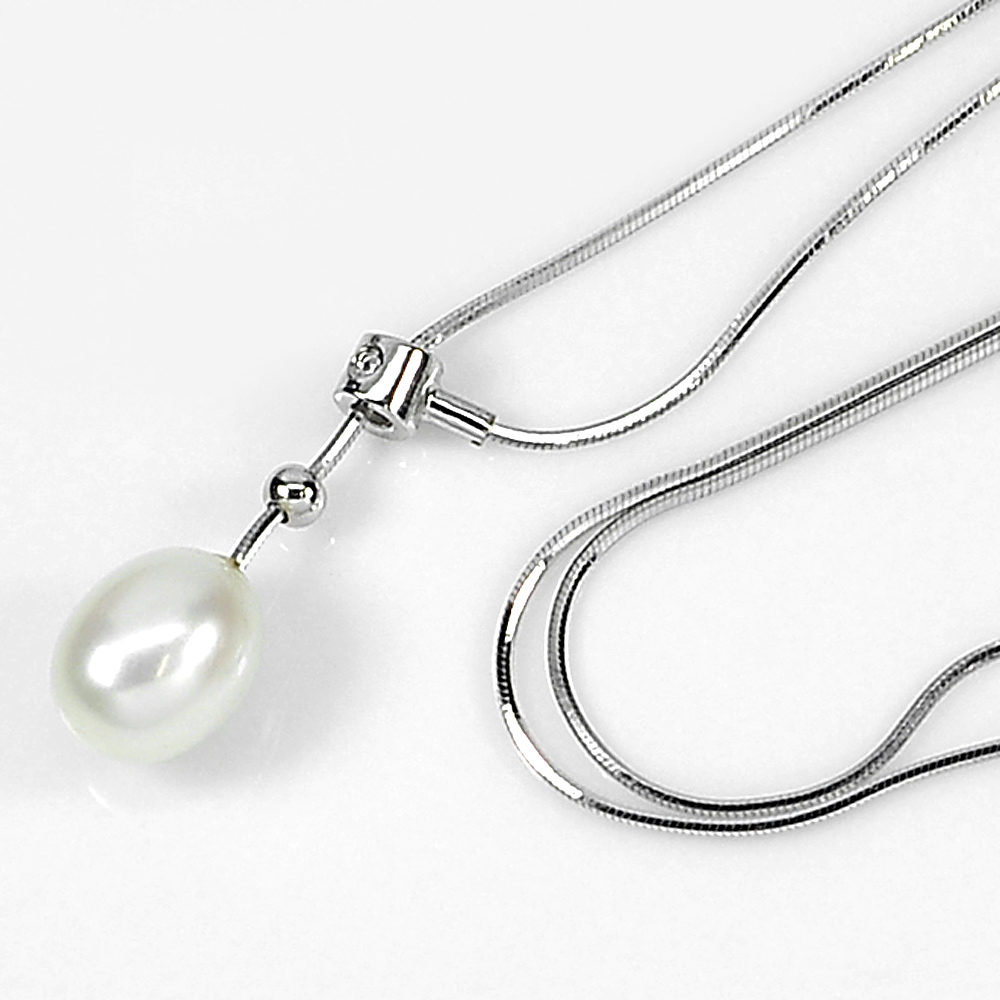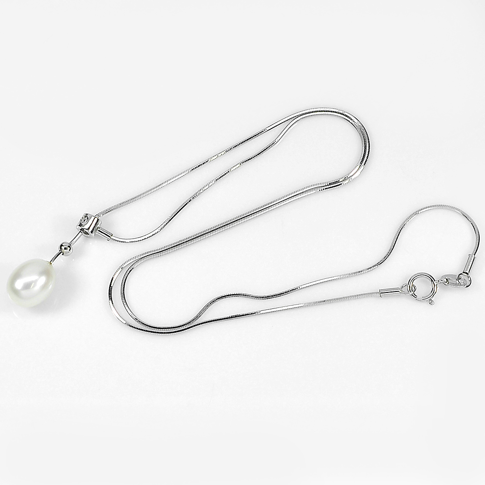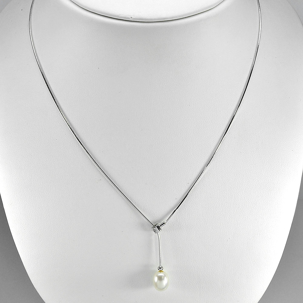 4.15 G. Natural White Pearl Sterling Silver Necklace Length 18 Inch.