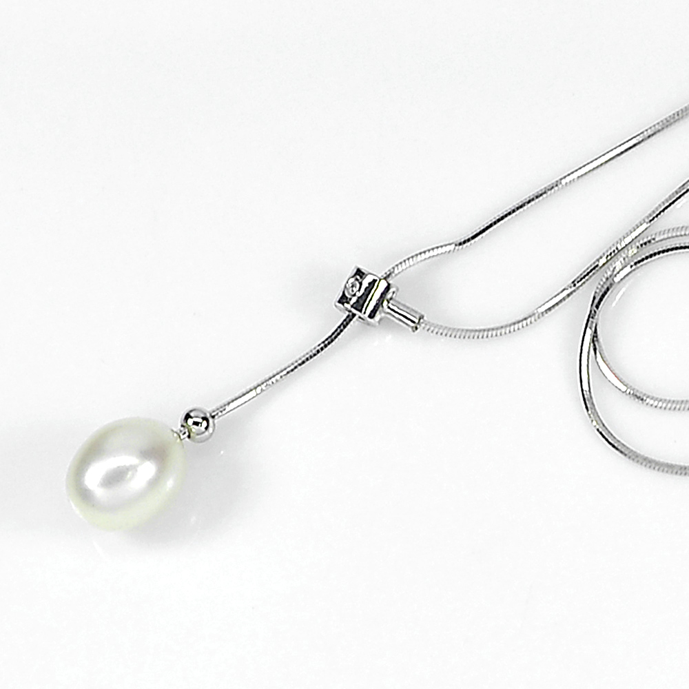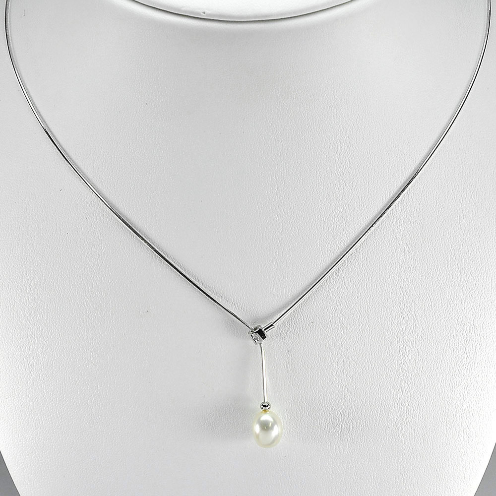 4.09 G. Elegant Natural White Pearl Sterling Silver Necklace Length 18 Inch.