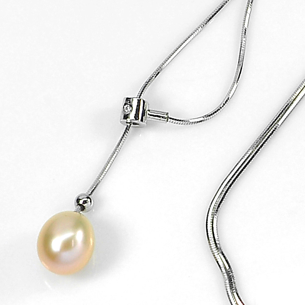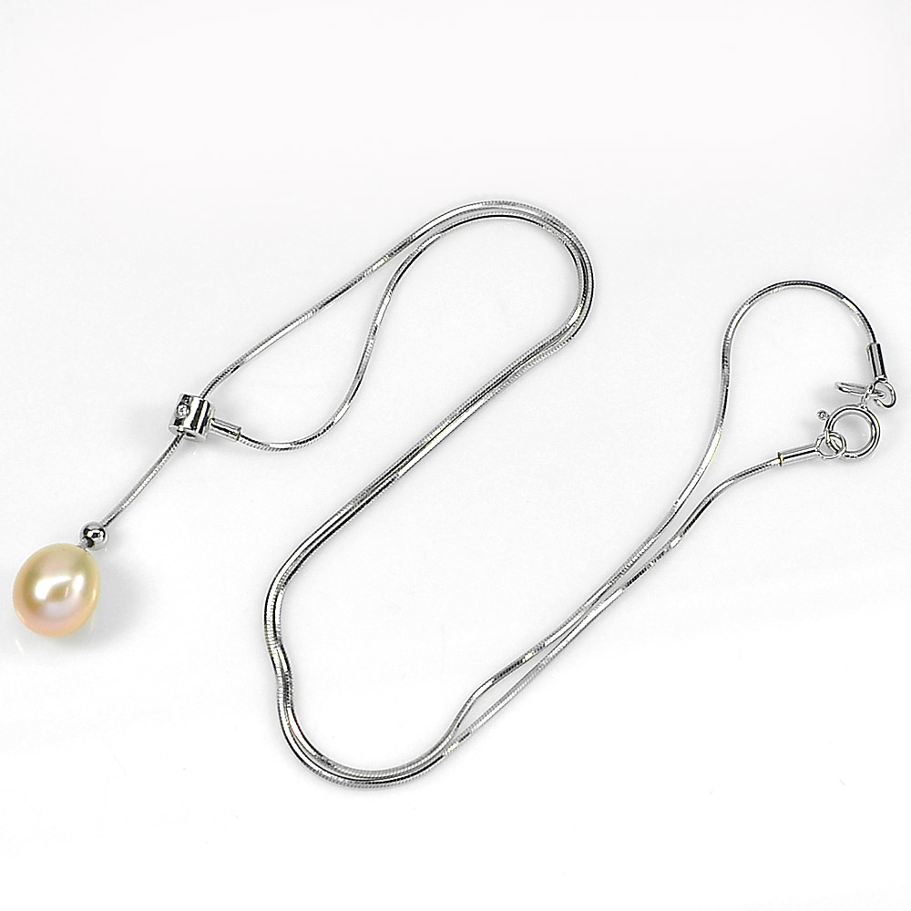 4.09 G. Lively Natural Orange Pearl Sterling Silver Necklace Length 18 Inch.