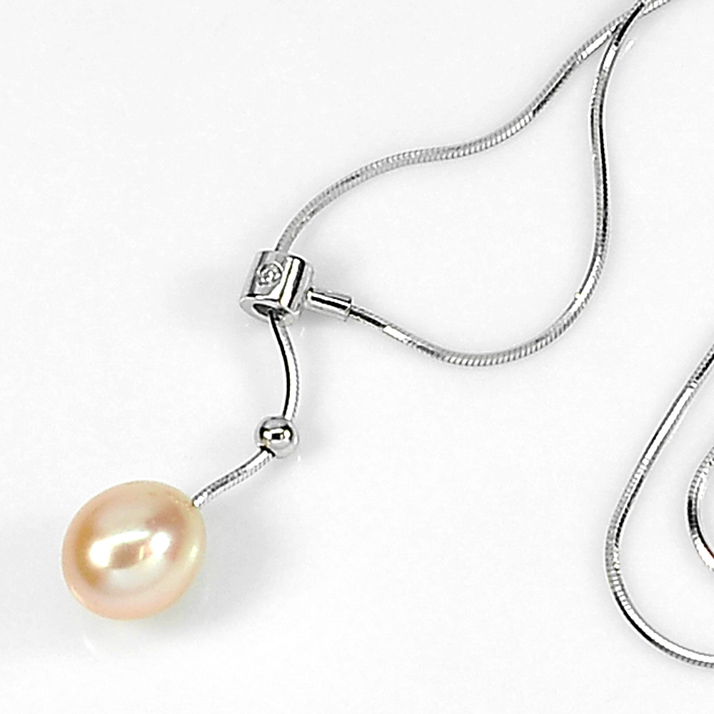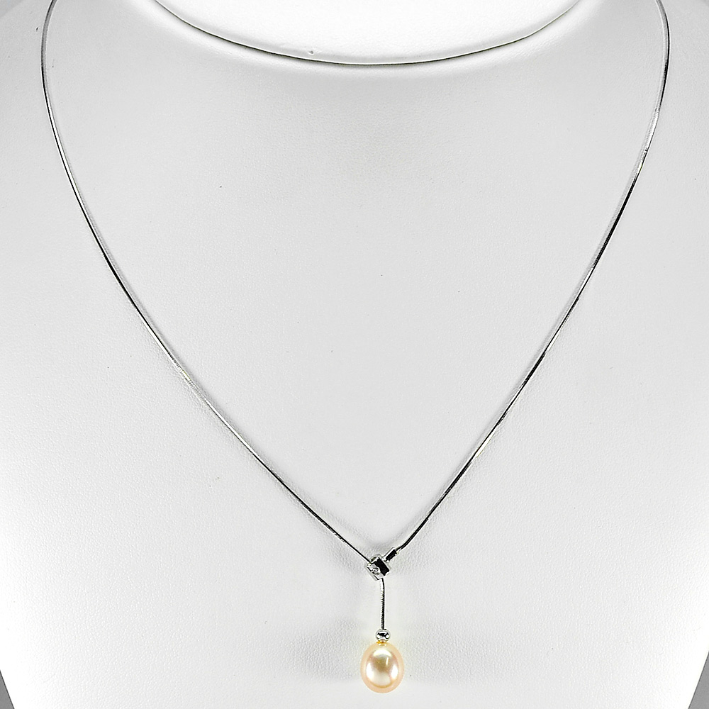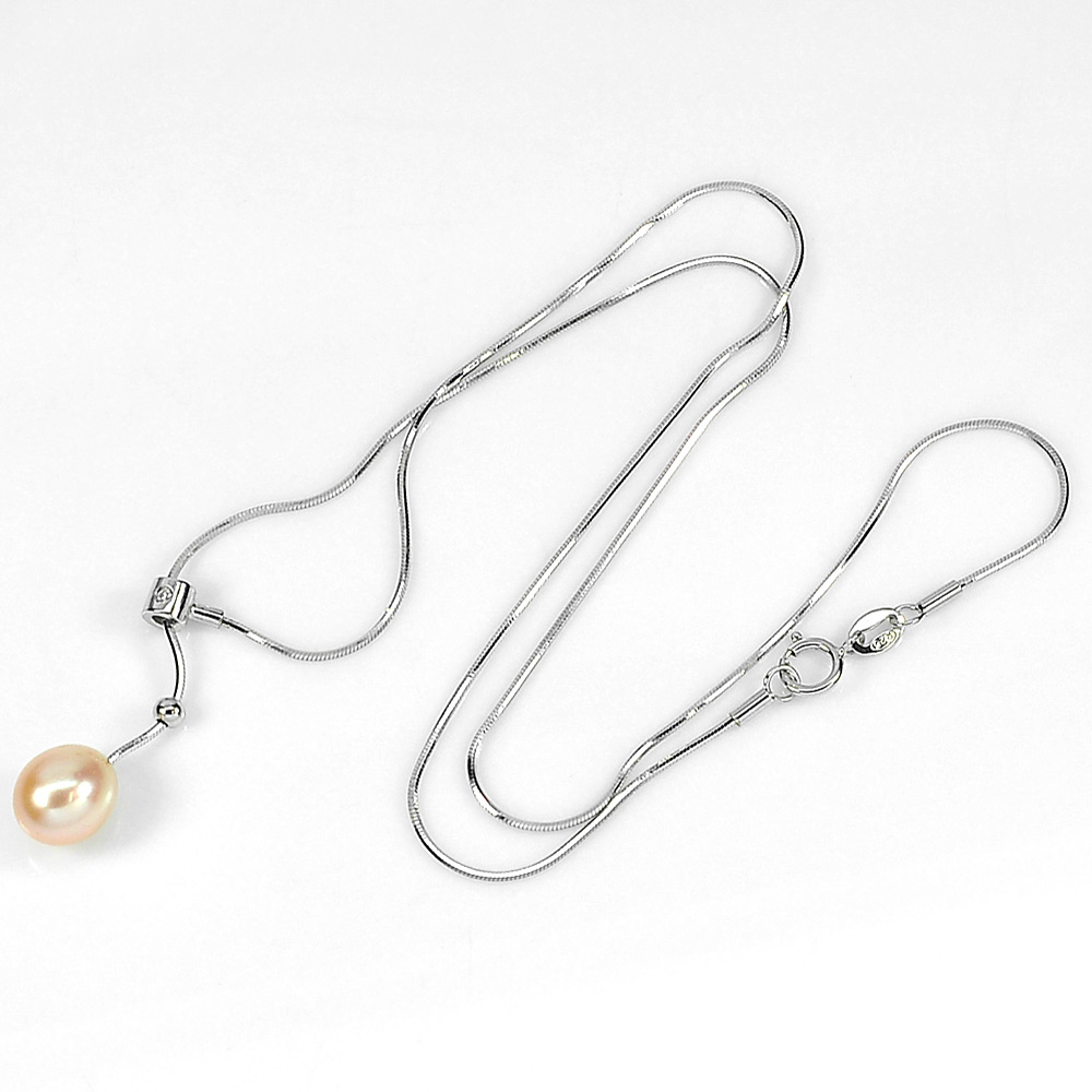 4.02 G. Pretty Natural Orange Pearl Sterling Silver Necklace Length 18 Inch.