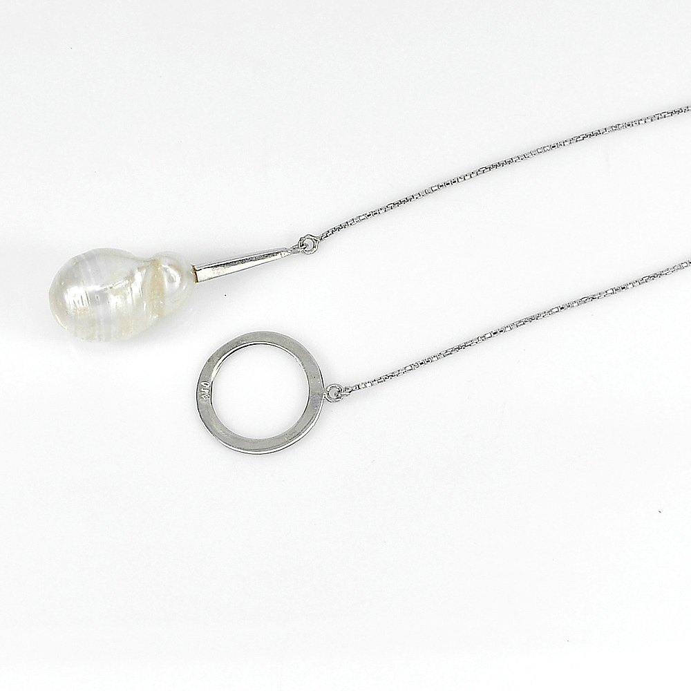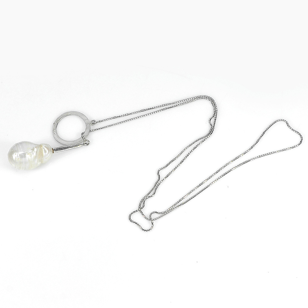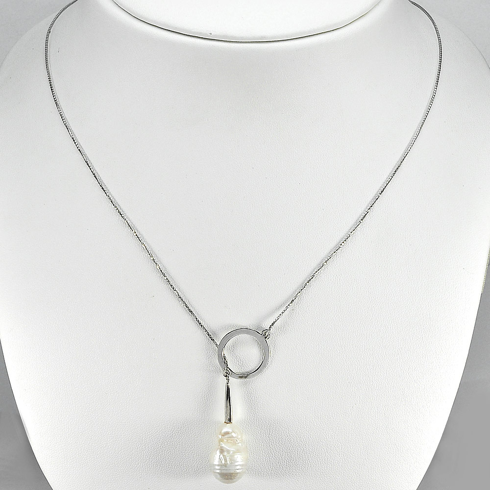 White Pearl Sterling Silver Necklace Length 20 Inch. 6.36 G. Natural Unheated