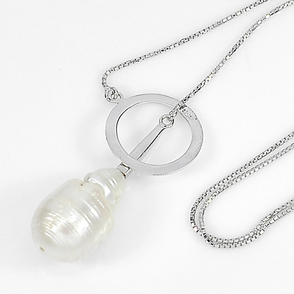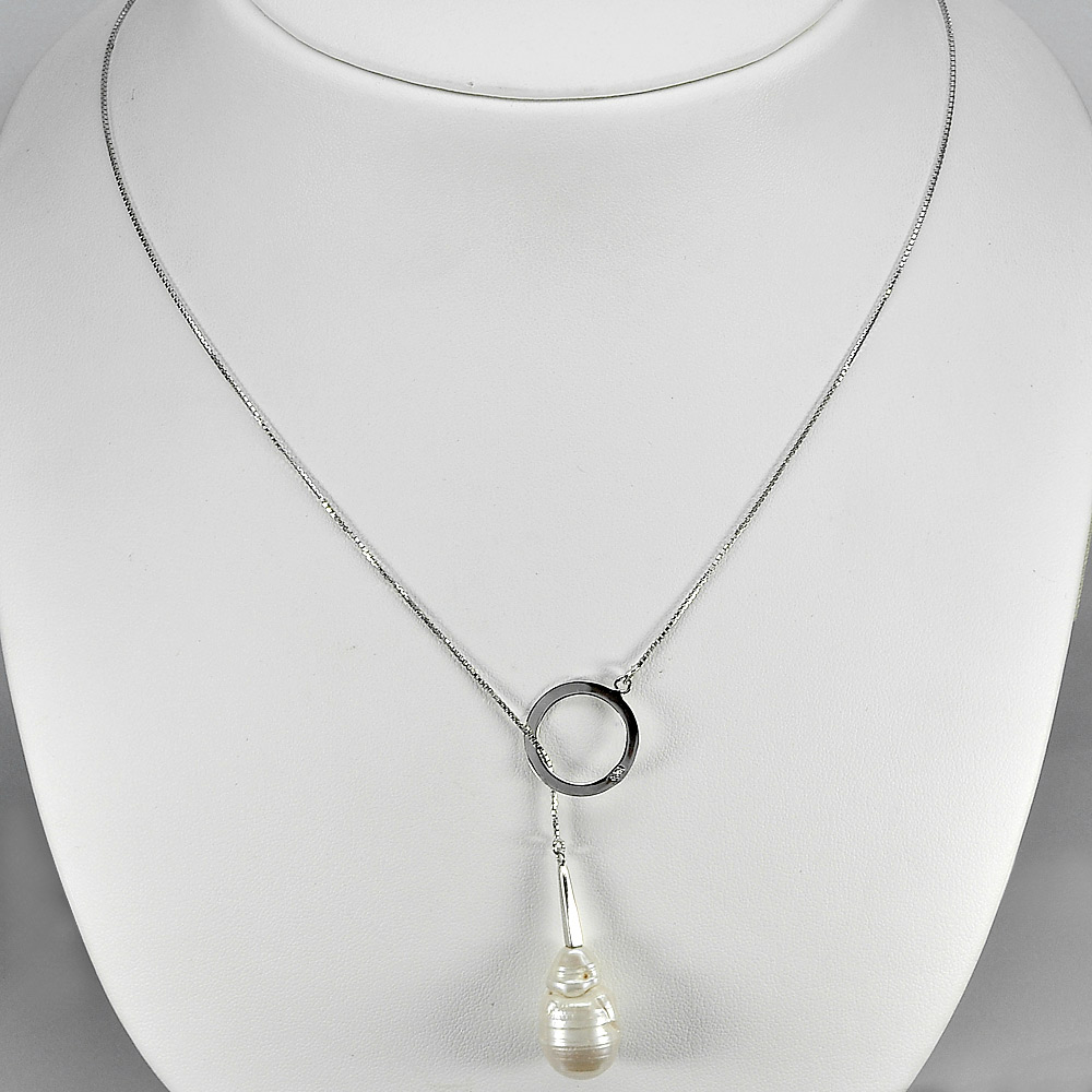 Length 20 Inch. 6.31 G. Wonderful Natural White Pearl Sterling Silver Necklace