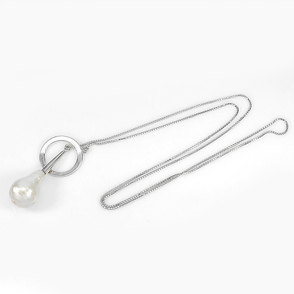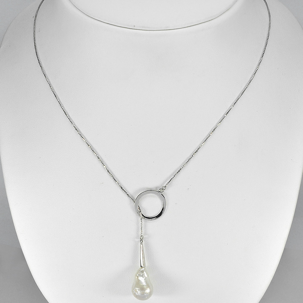 5.45 G. Natural Fancy White Pearl Sterling Silver Necklace Length 20 Inch.