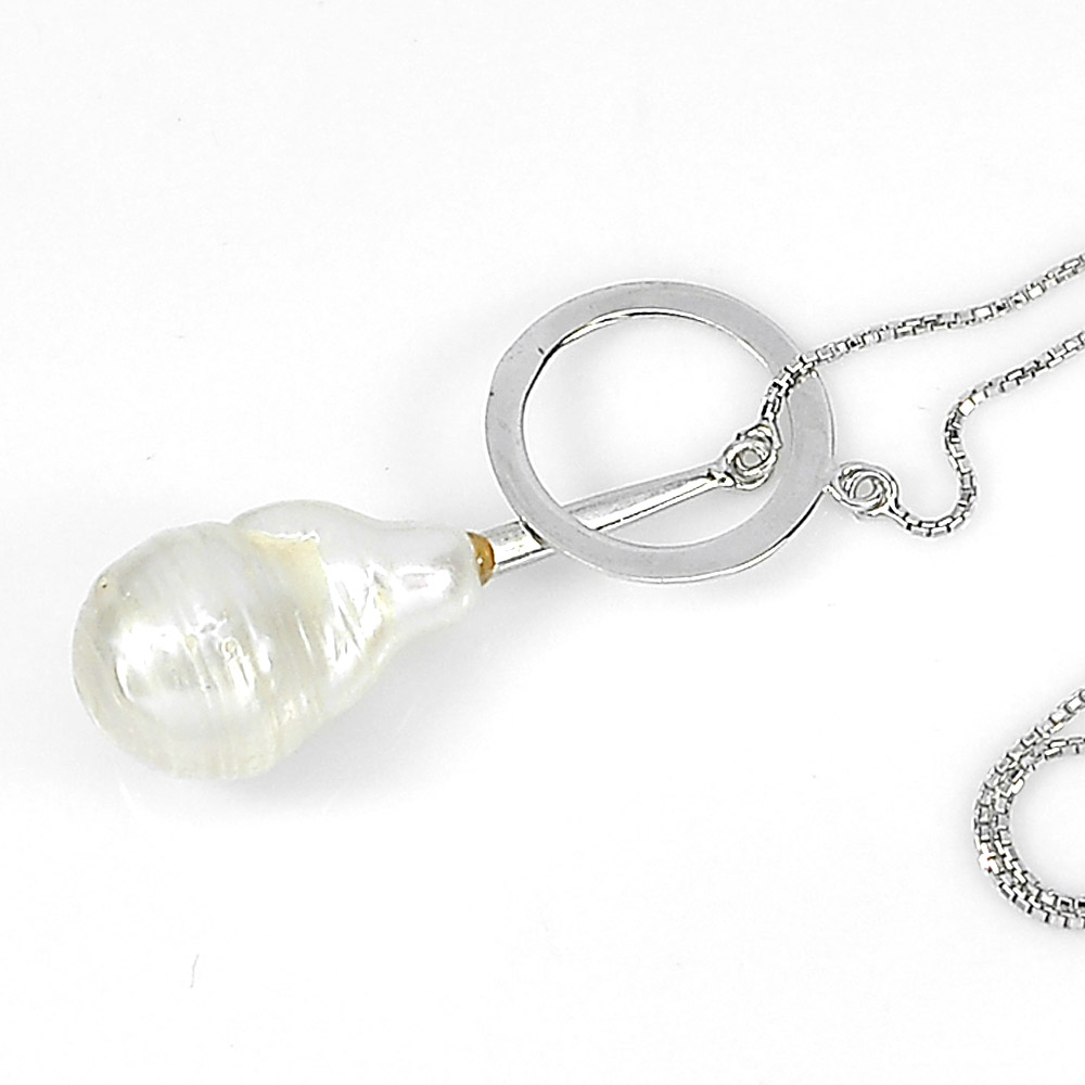 5.91 G. Fancy Natural White Pearl Silver Jewelry Necklace Length 20 Inch.
