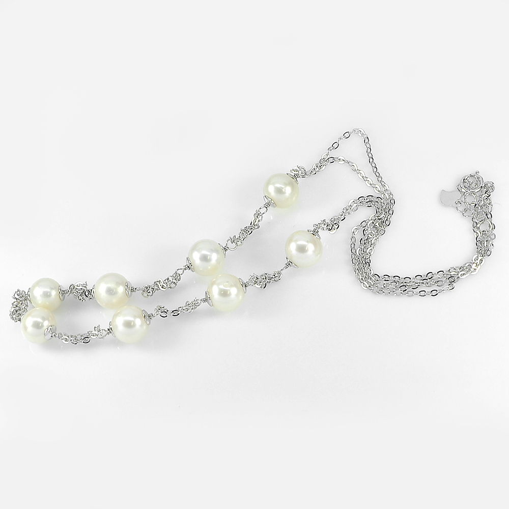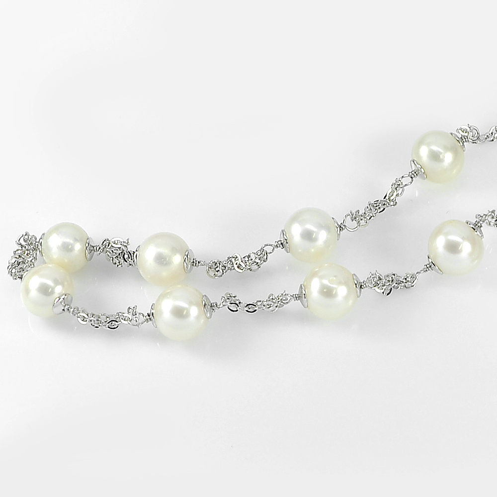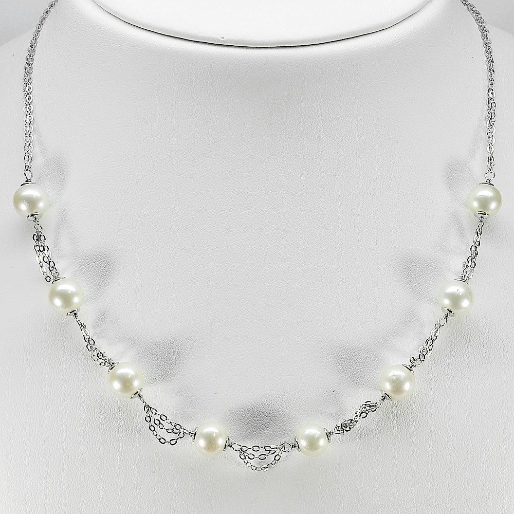 12.22 G. Real 925 Sterling Silver Necklace Length 18 Natural White Pearl