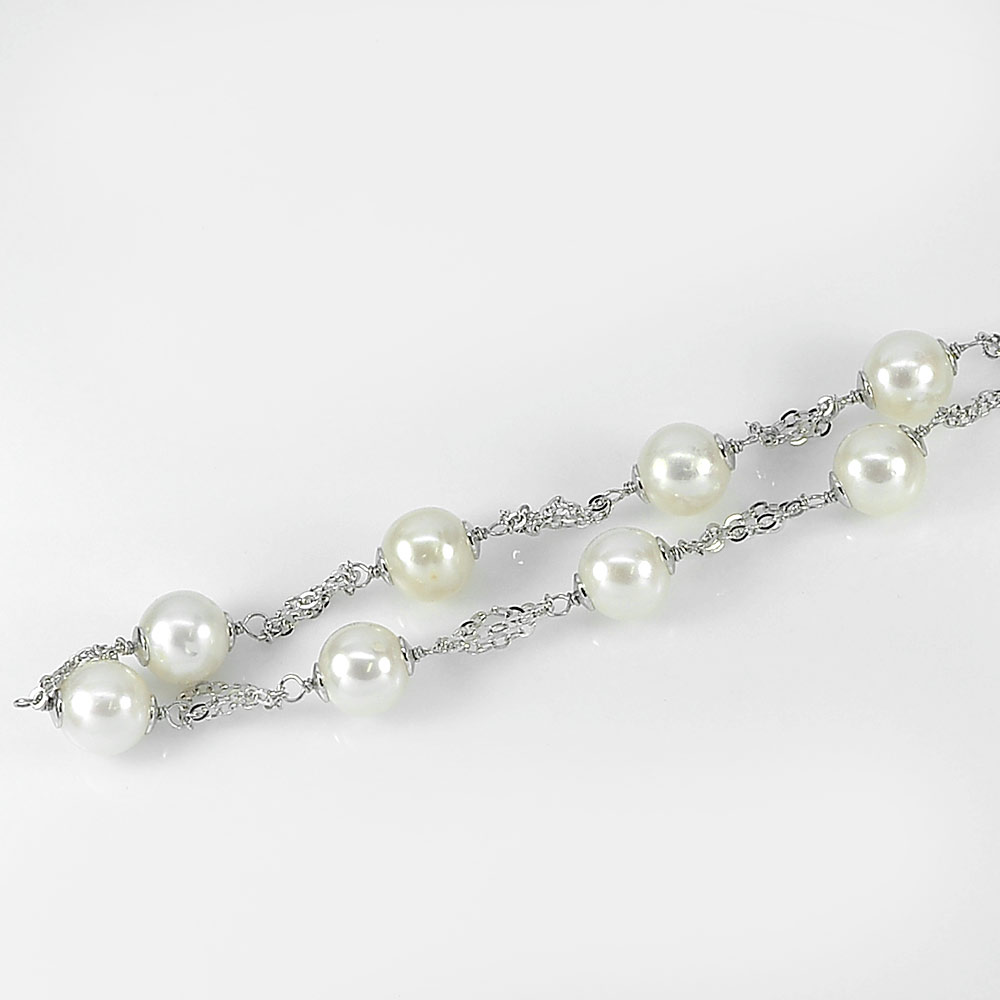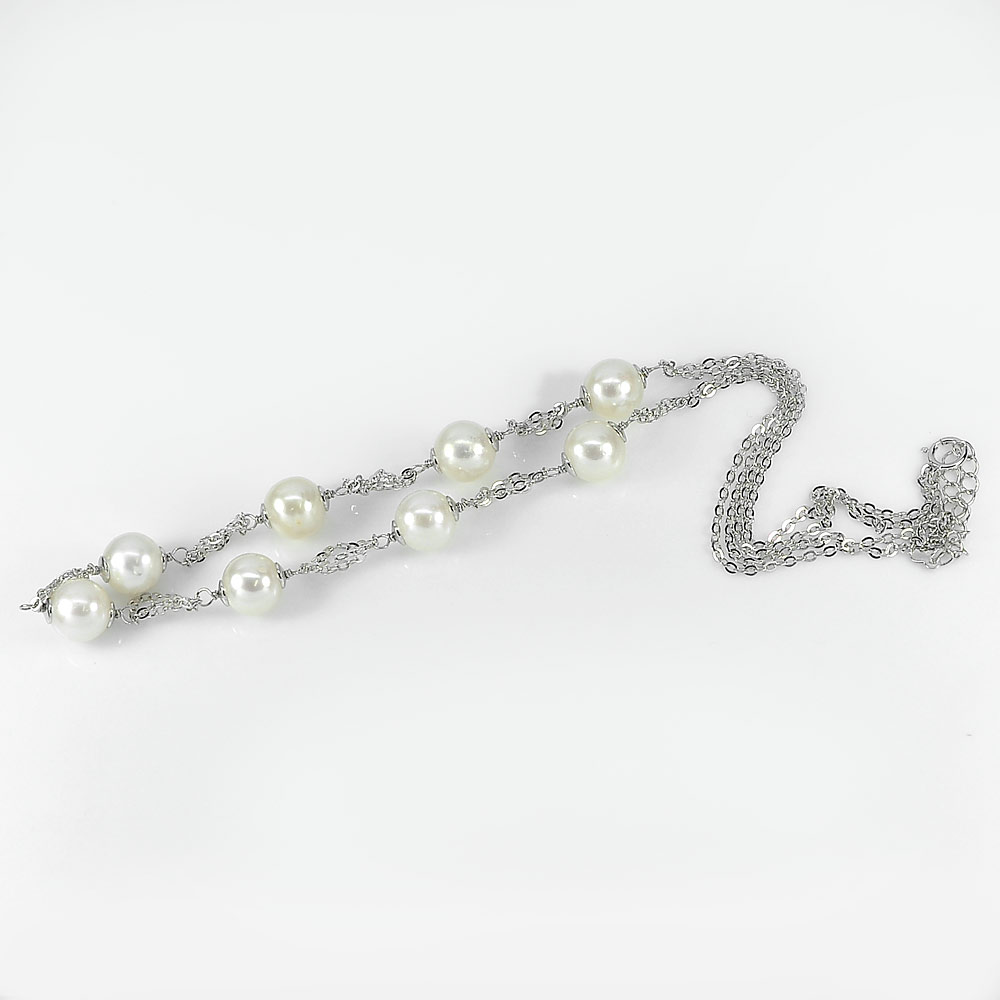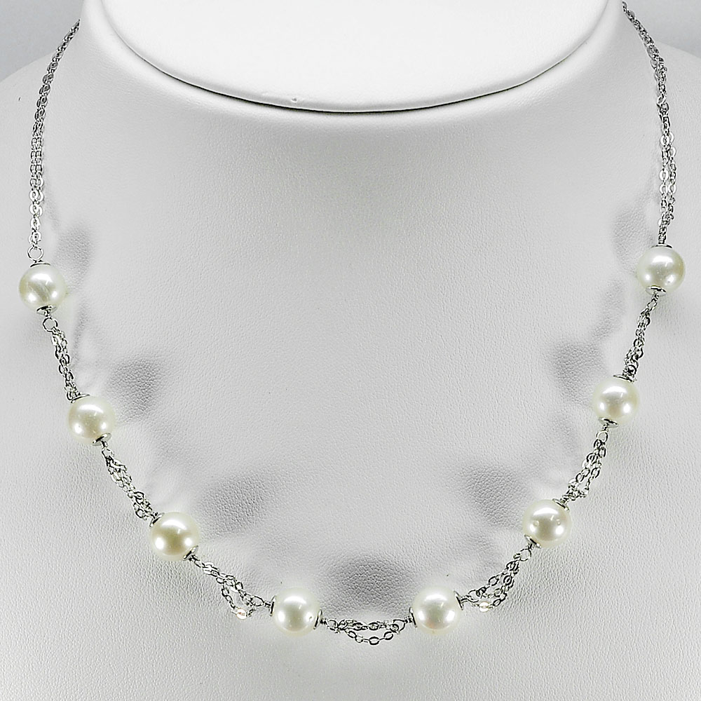 12.12 G. 925 Sterling Silver Necklace Length 18 Inch. Natural Gems White Pearl