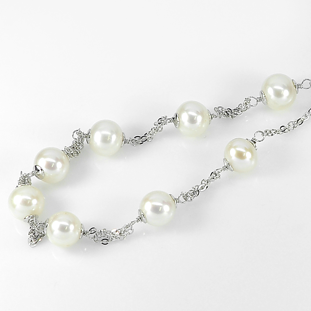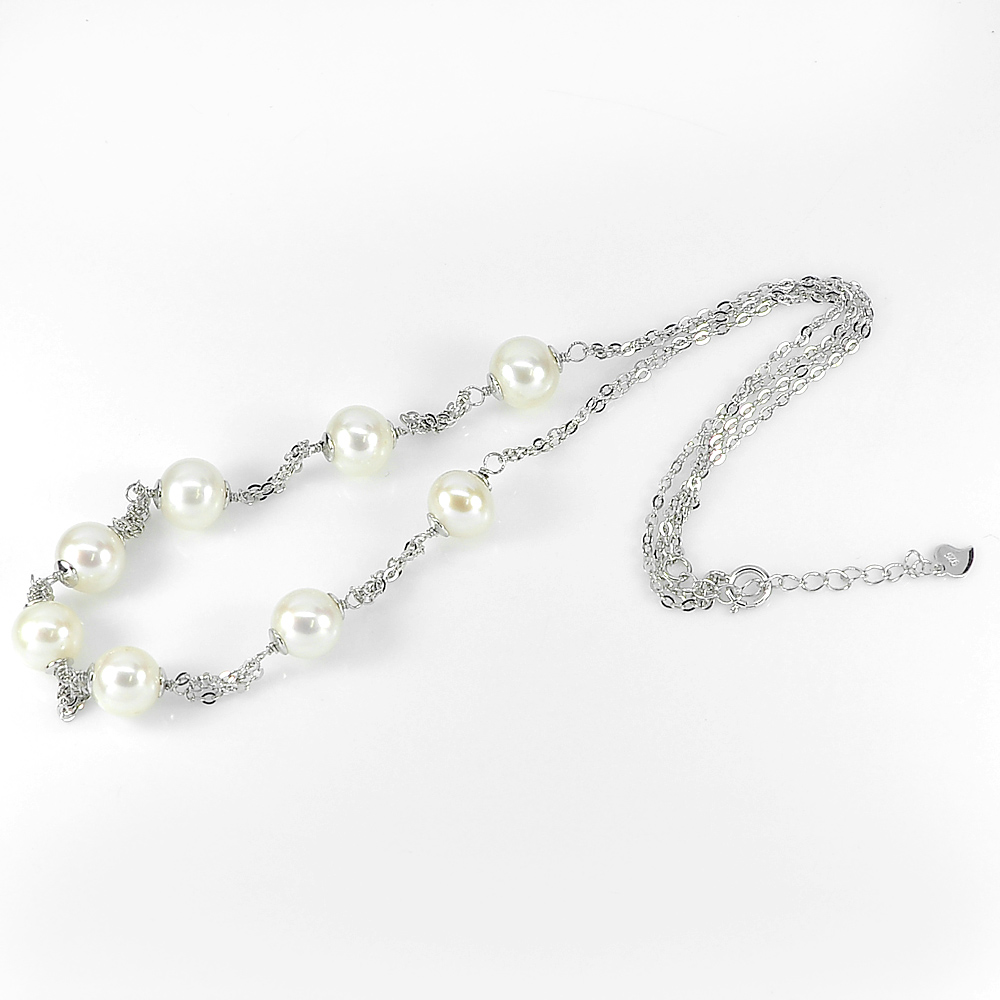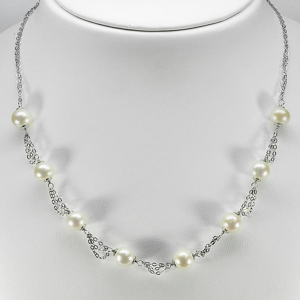 12.26 G. Natural White Pearl Real 925 Sterling Silver Necklace Length 16 Inch.