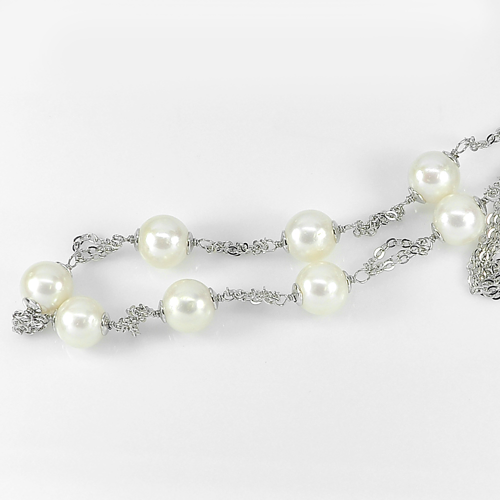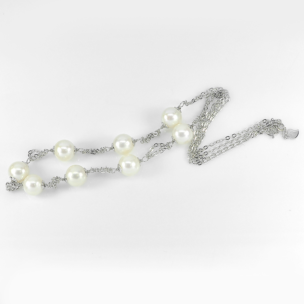 Length 18 Inch.12.43 G. Natural White Pearl Real 925 Sterling Silver Necklace