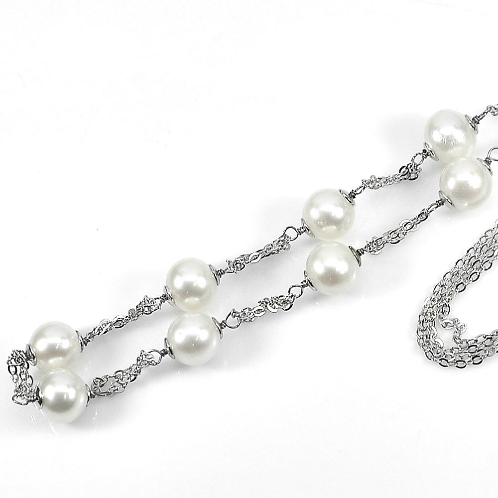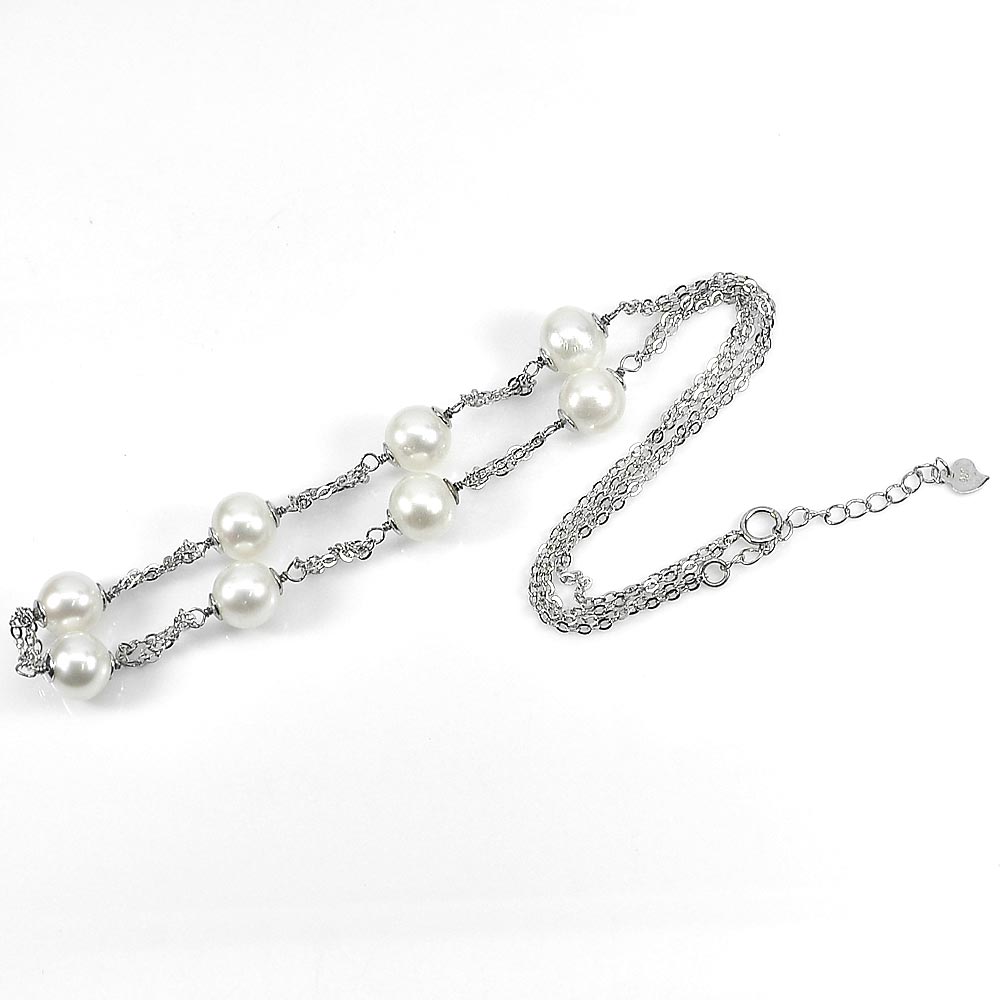 12.30 G. Natural Gemstones White Pearl 925 Sterling Silver Necklace 16 Inch.
