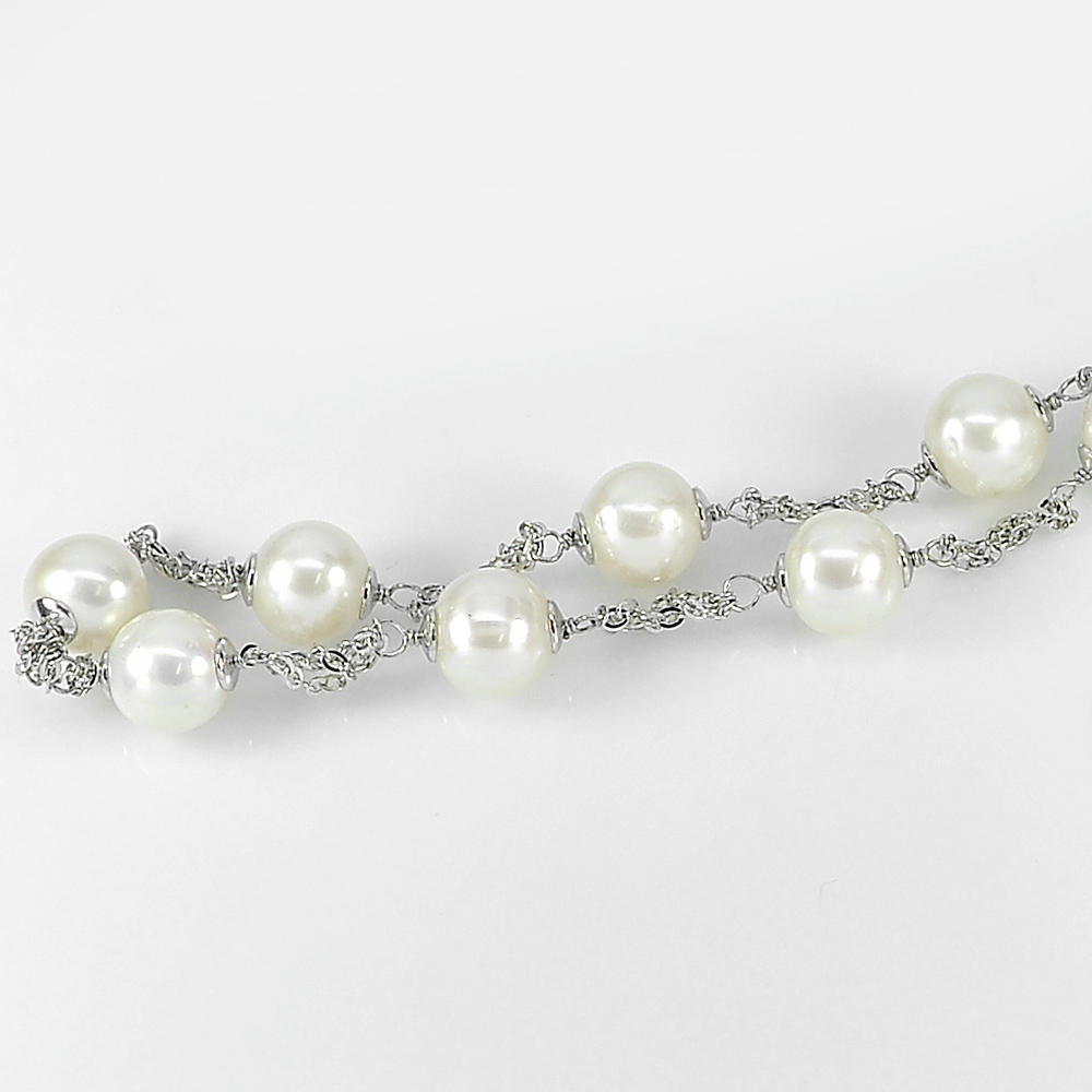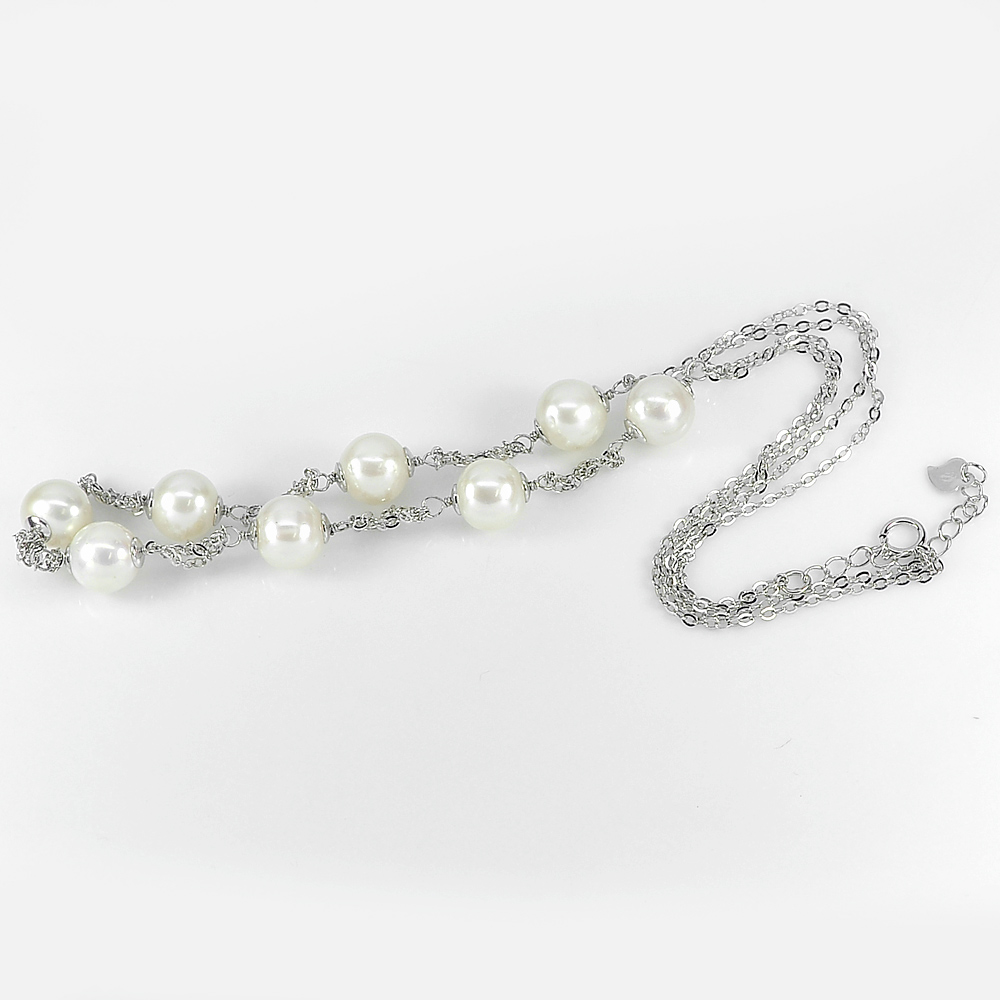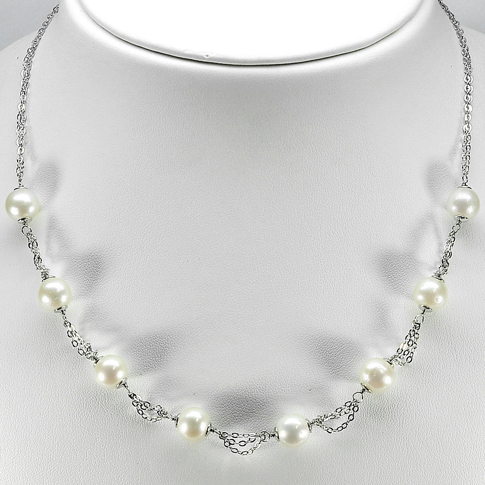 12.35 G. Length 16 Inch.Natural White Pearl 925 Sterling Silver Jewelry Necklace