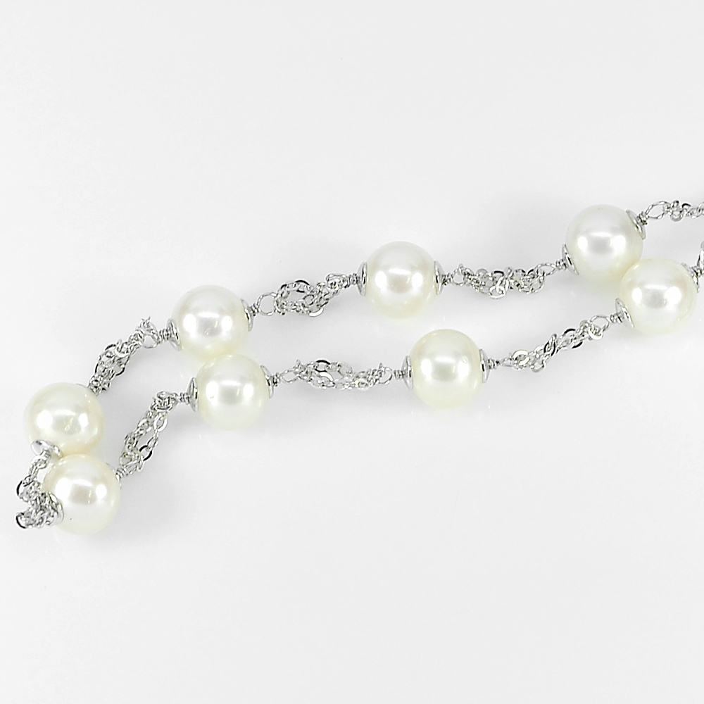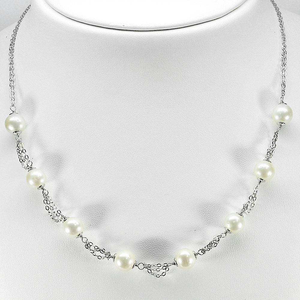12.34 G. Natural White Pearl Real 925 Sterling Silver Necklace Length 16 Inch.