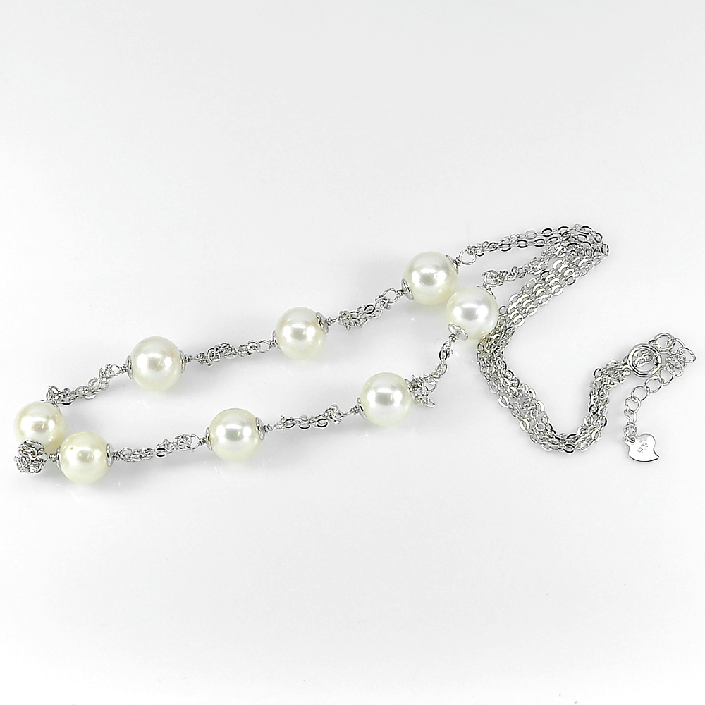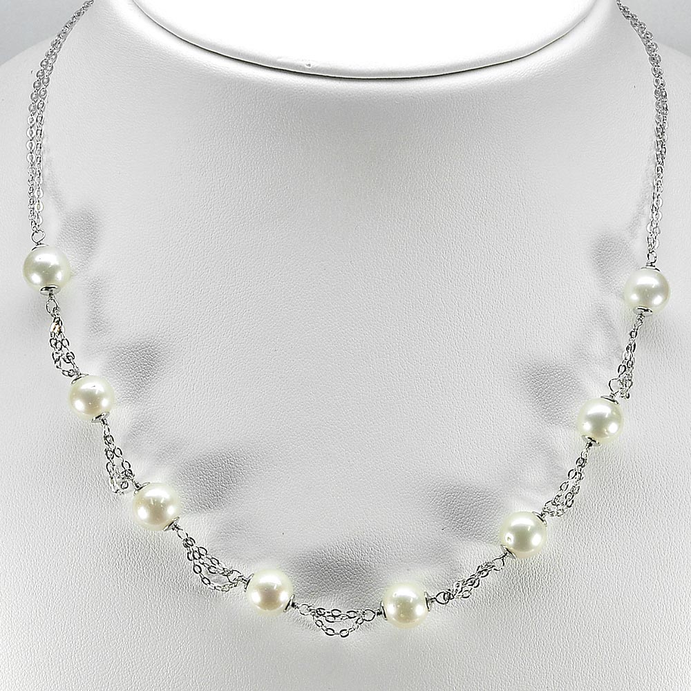Length 18 Inch. 12.17 G.Natural White Pearl 925 Sterling Silver Jewelry Necklace