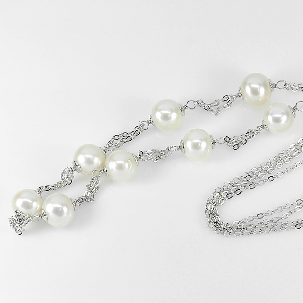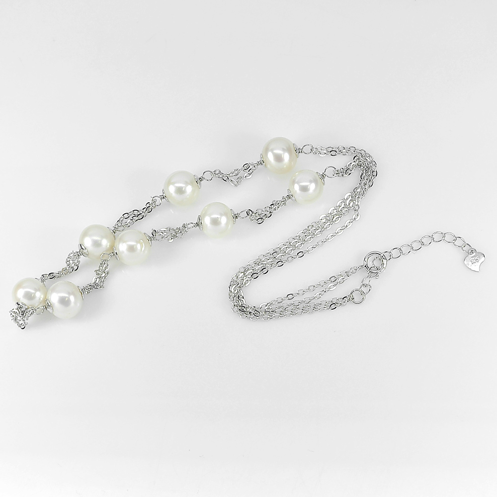 12.35 G.Natural White Pearl 925 Sterling Silver Jewelry Necklace Length 18 Inch.