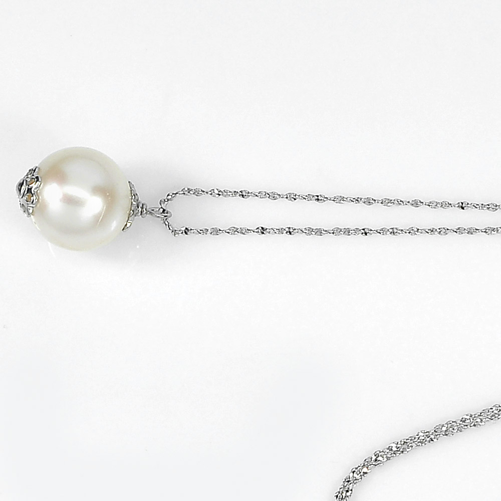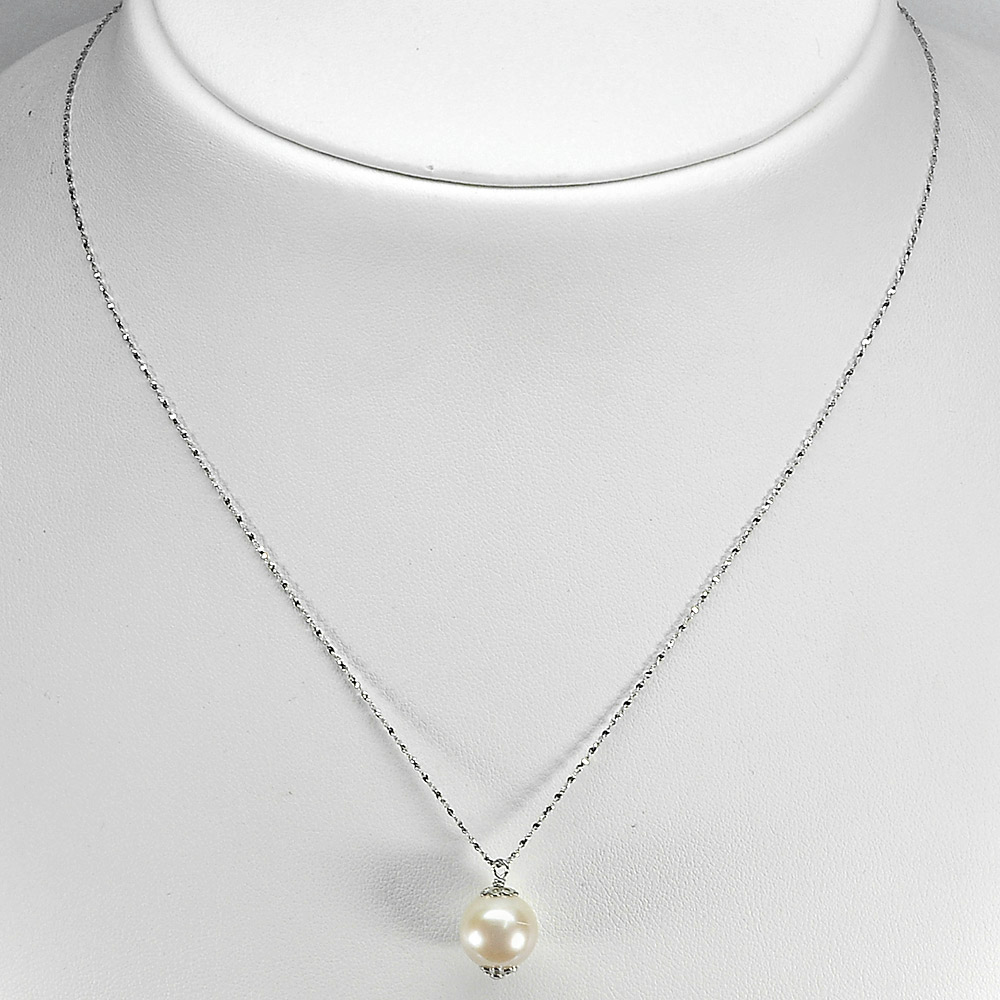 2.78 G. Graceful Natural White Pearl Silver Jewelry Necklace Length 18 Inch.