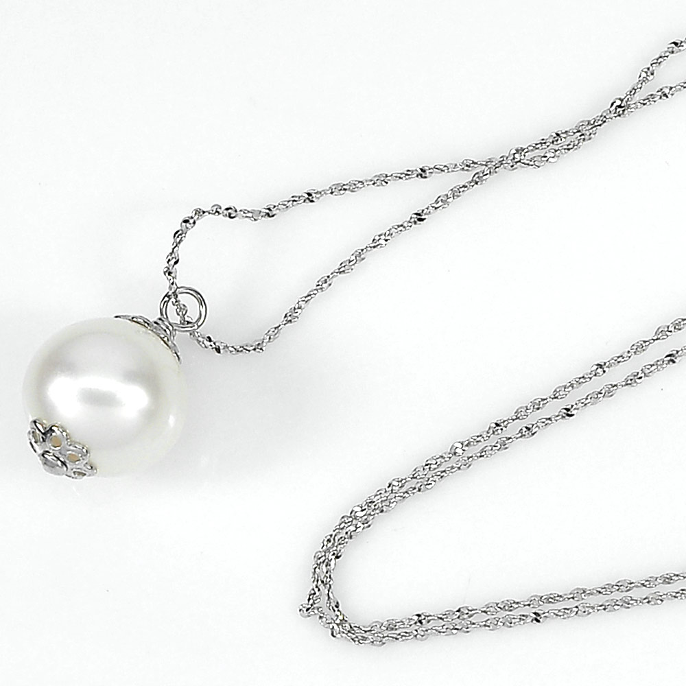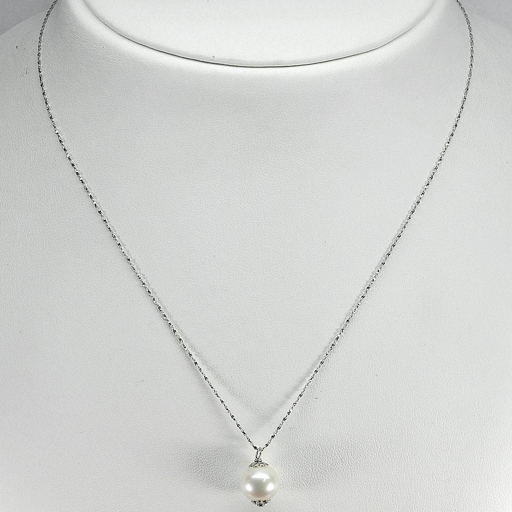 2.79 G. Length 18 Inch. Natural White Pearl Sterling Silver Necklace