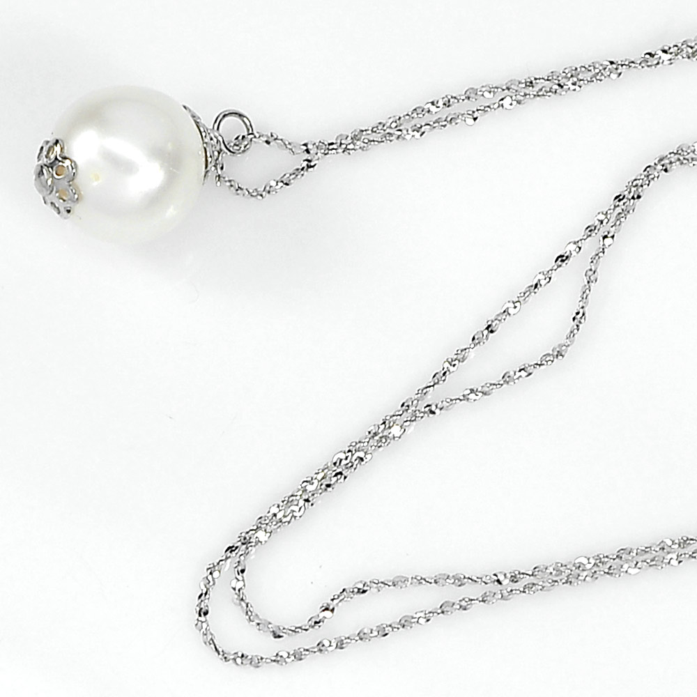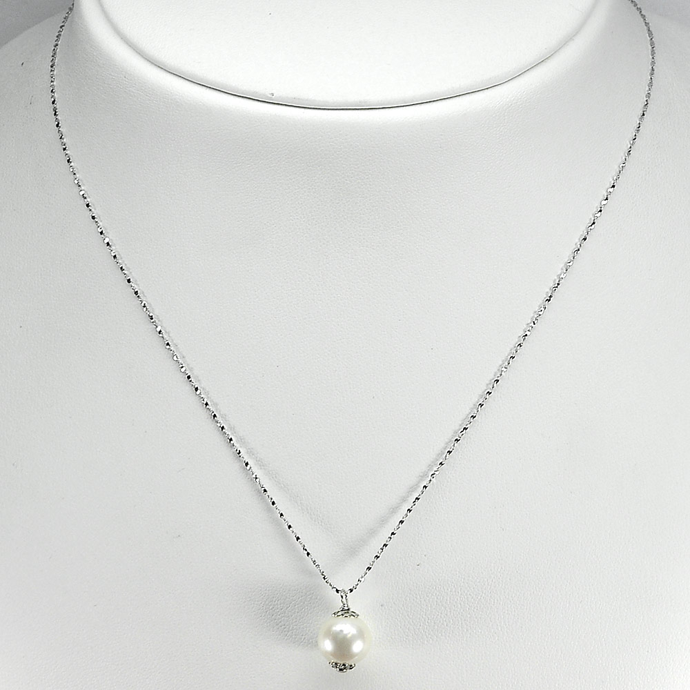 2.75 G. Length 18 Inch. Natural White Pearl Sterling Silver Necklace