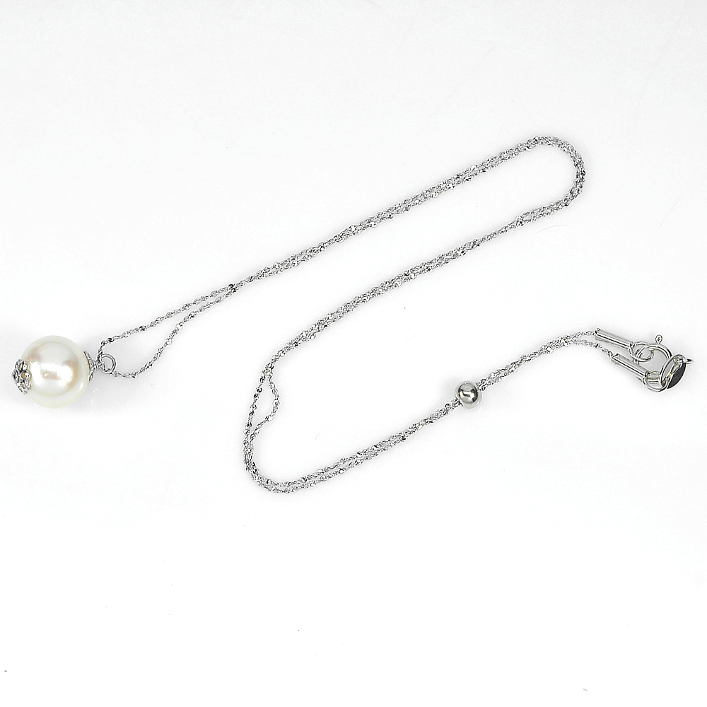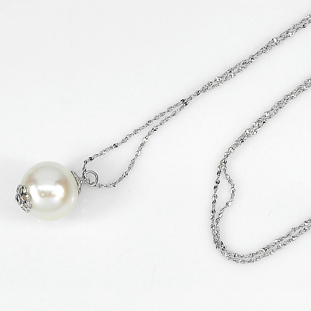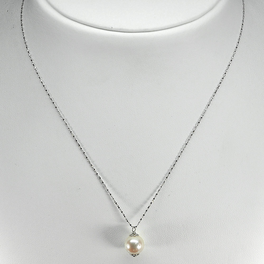 Sterling Silver Necklace 2.79 G. Natural White Pearl Length 18 Inch.