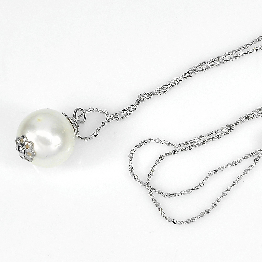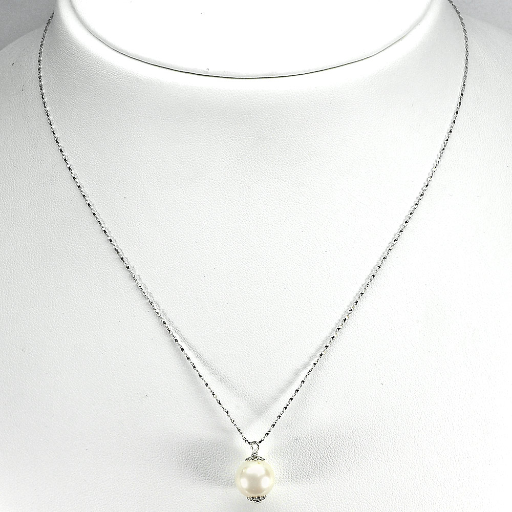Silver Necklace Length 18 Inch. 2.89 G. Natural White Pearl
