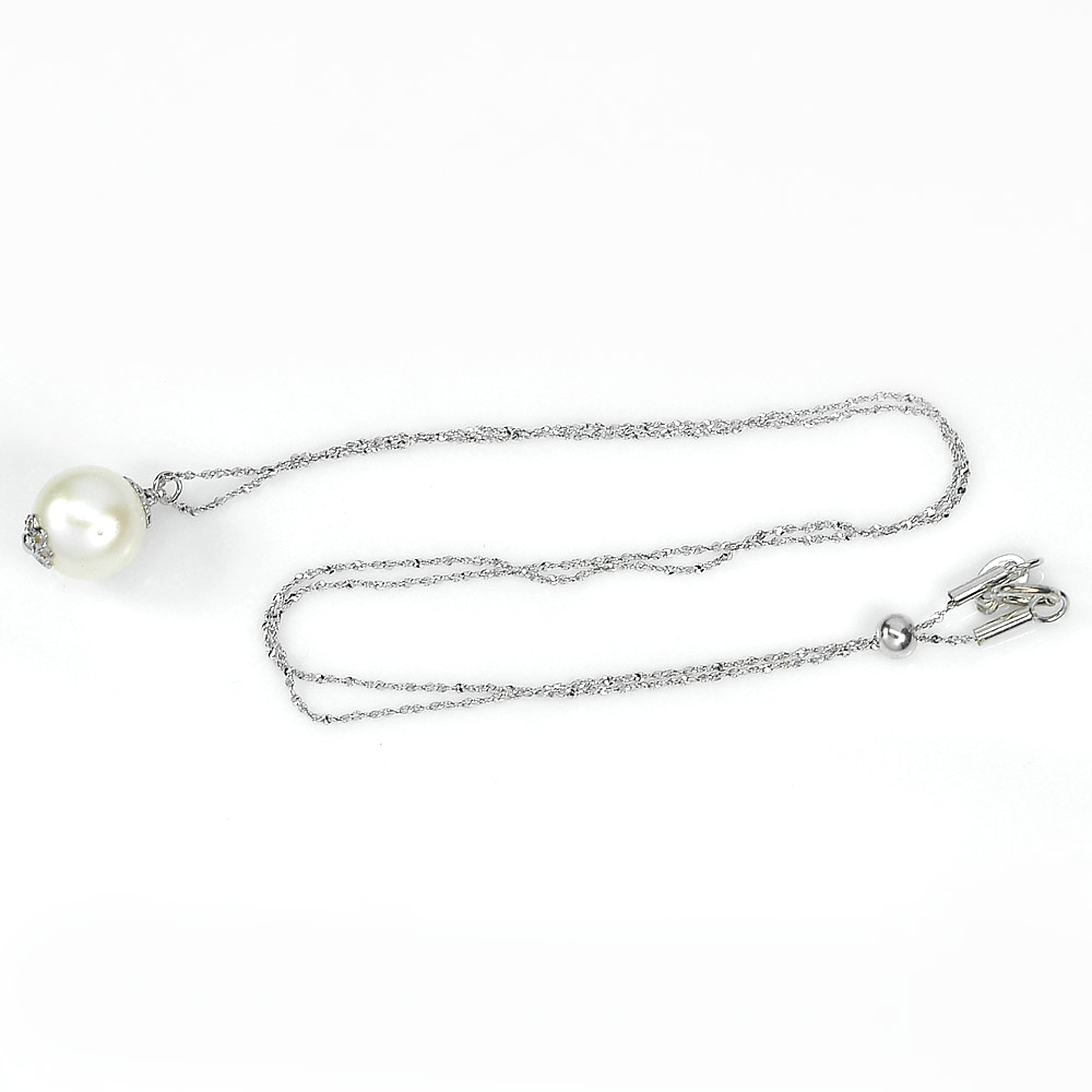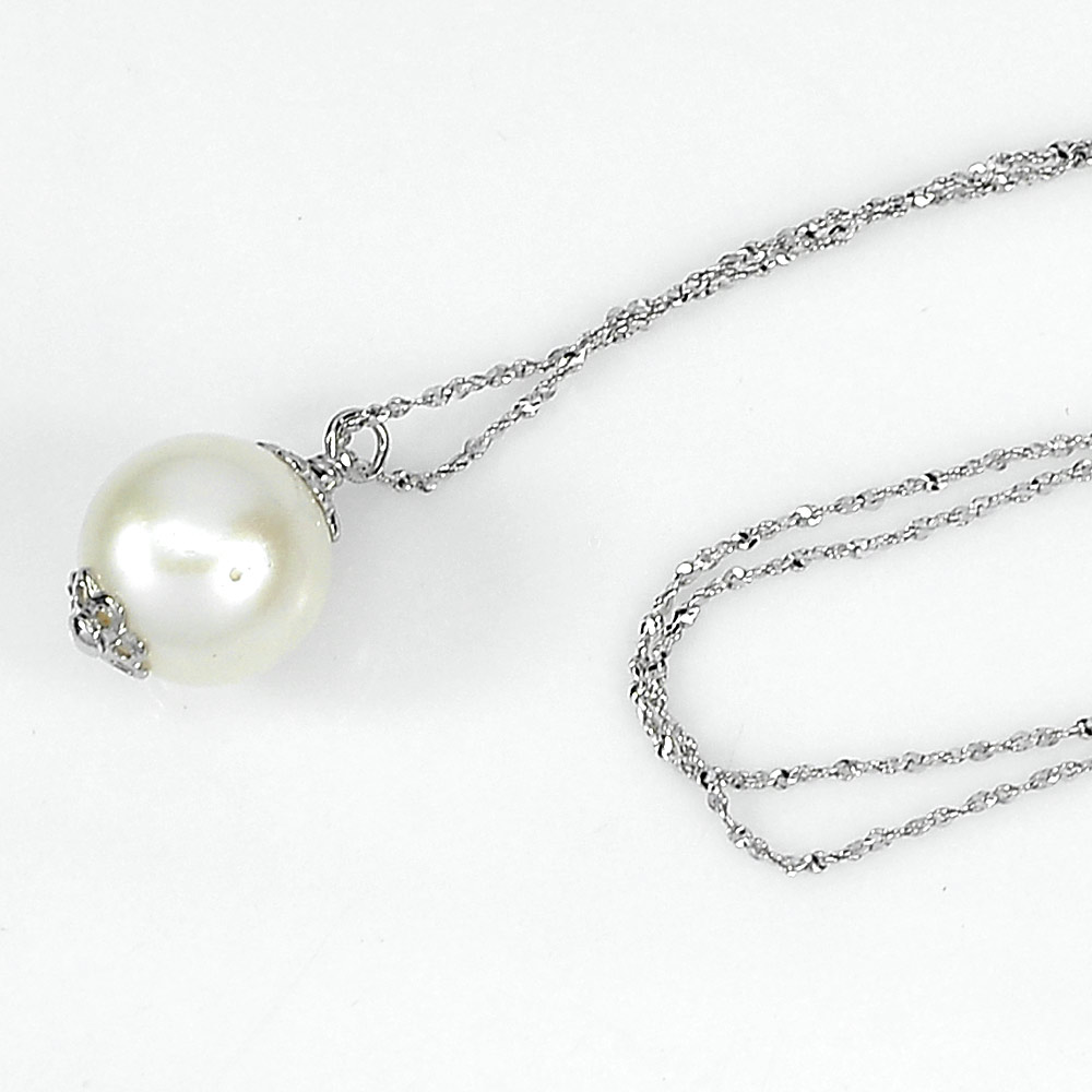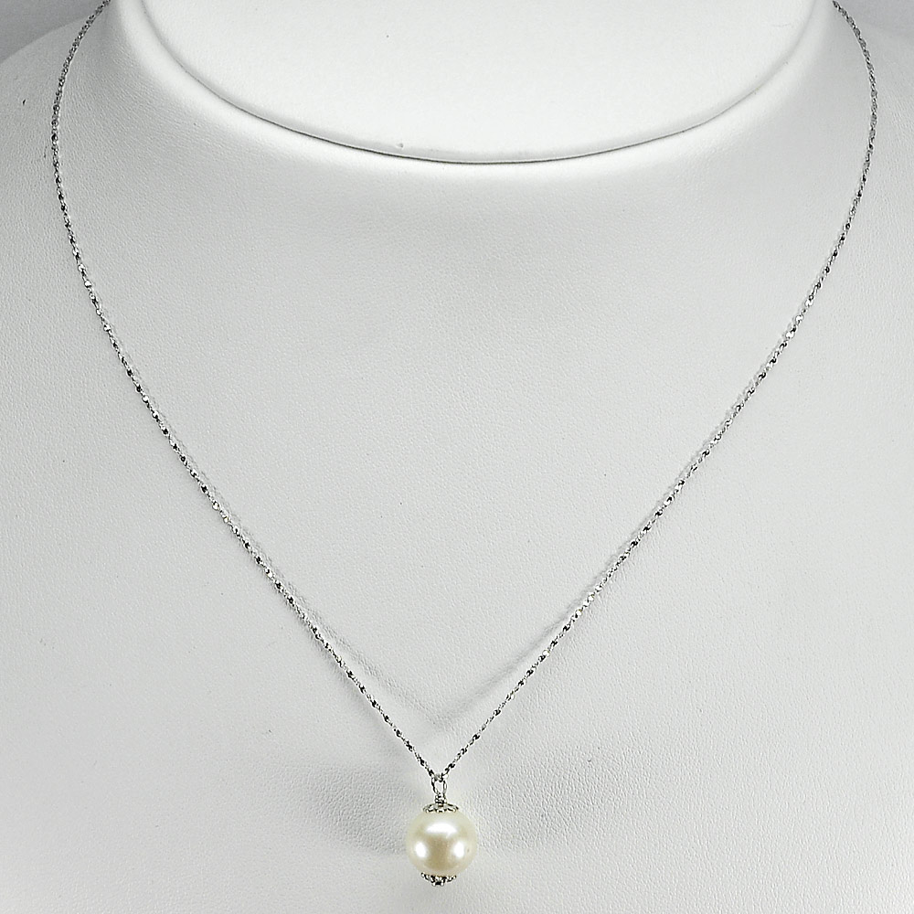2.74 G. Natural White Pearl Silver Jewelry Necklace Length 18 Inch.