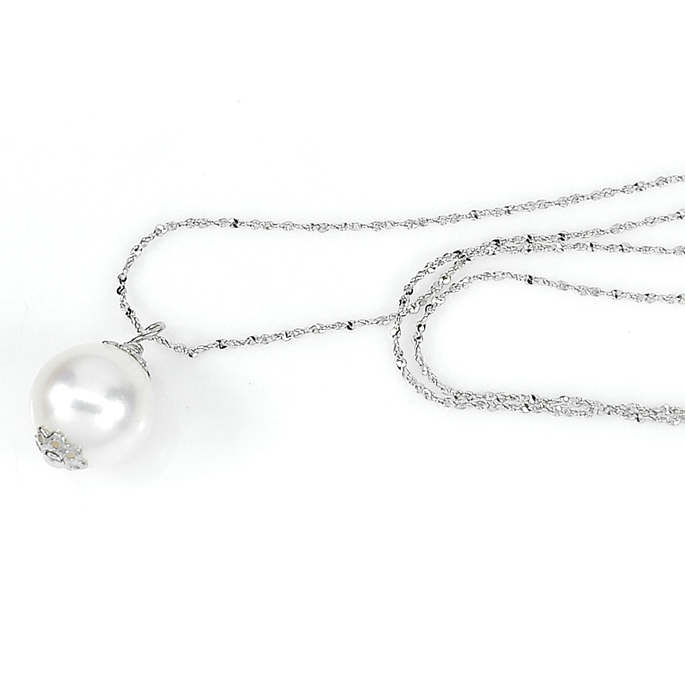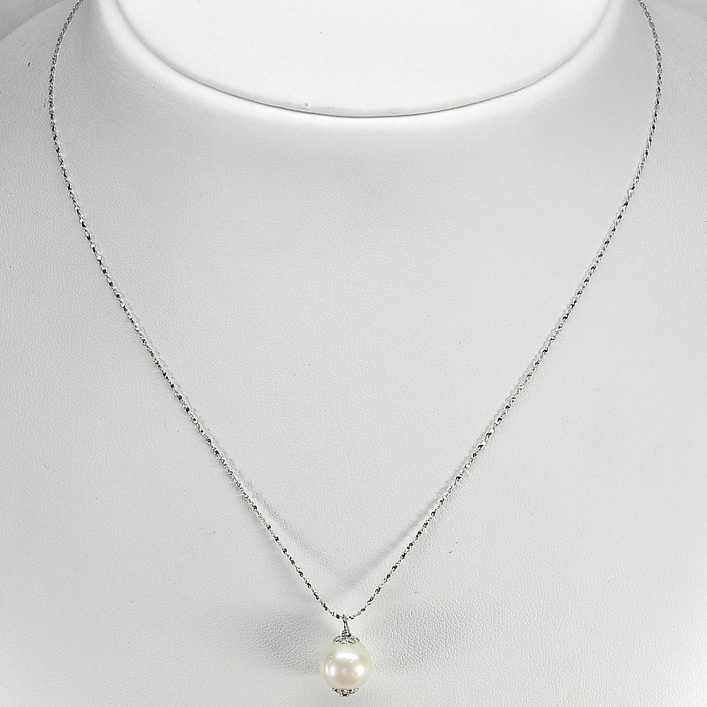 2.81 G. Charming Natural White Pearl Silver Jewelry Necklace Length 18 Inch.