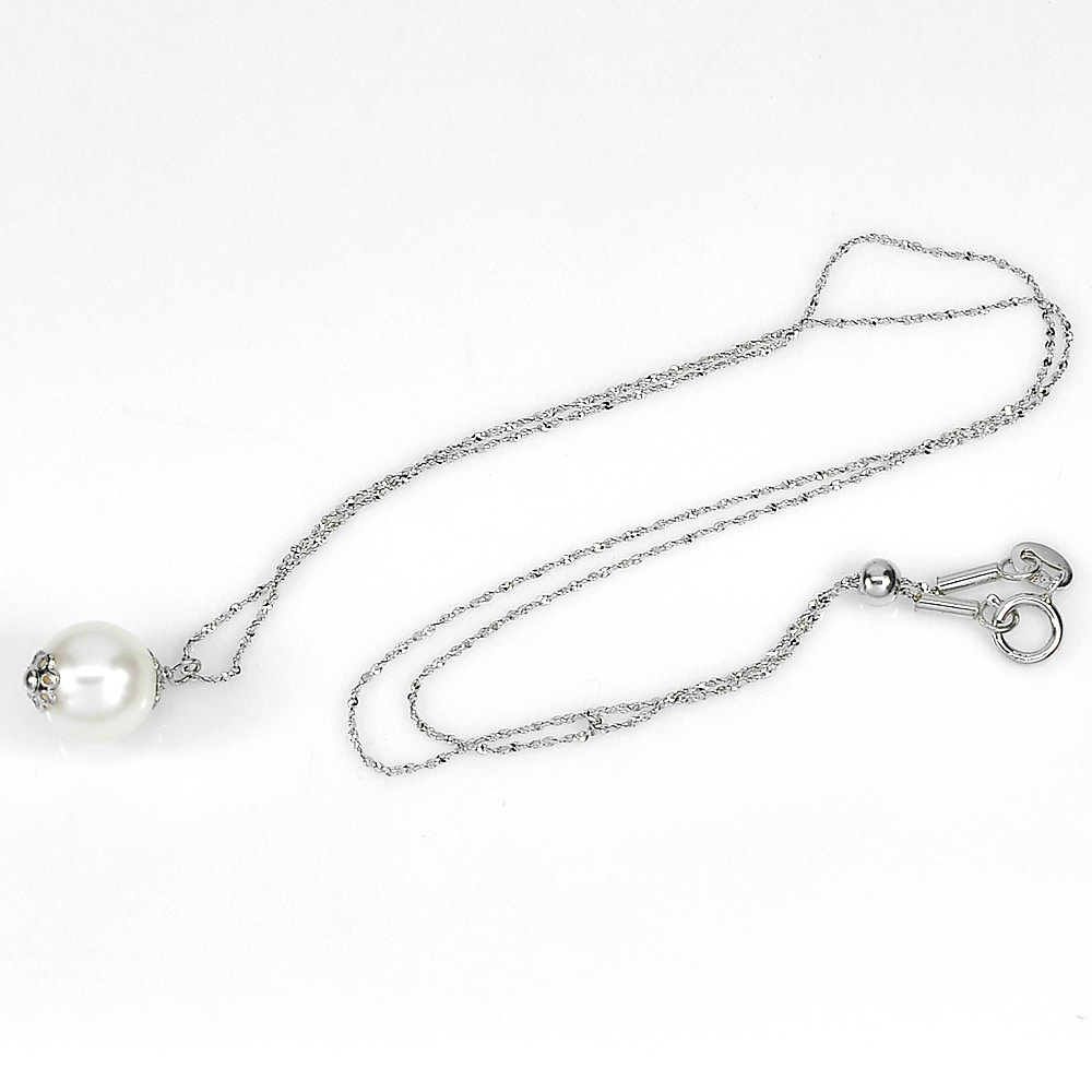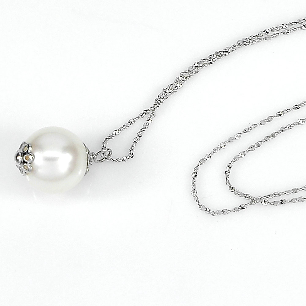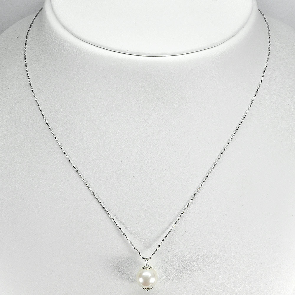 2.77 G. Length 18 Inch. Natural White Pearl Sterling Silver Necklace