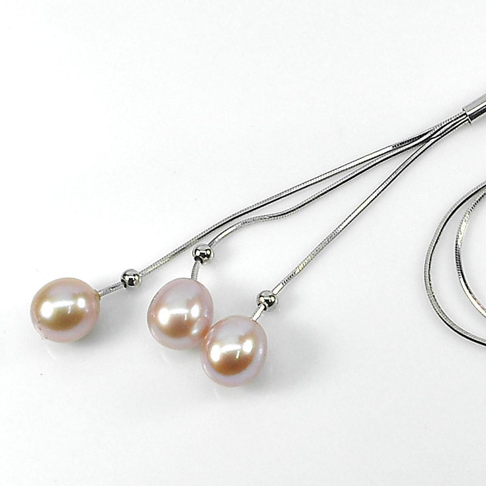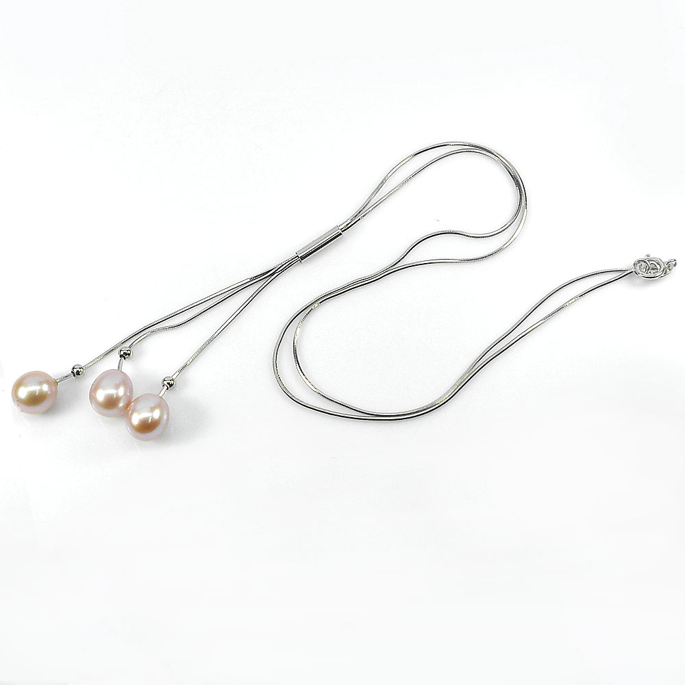 Length 22 Inch. 6.67 G. Natural Pink Pearl Real 925 Sterling Silver Necklace