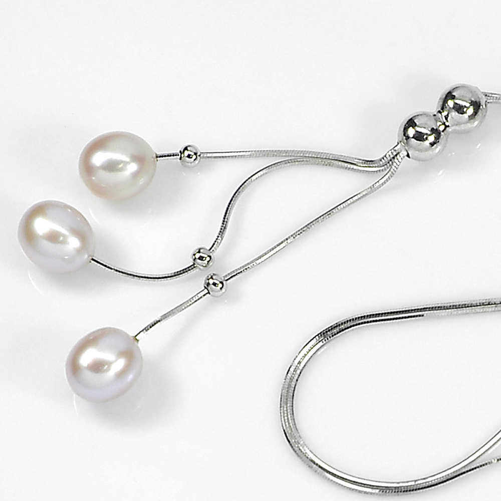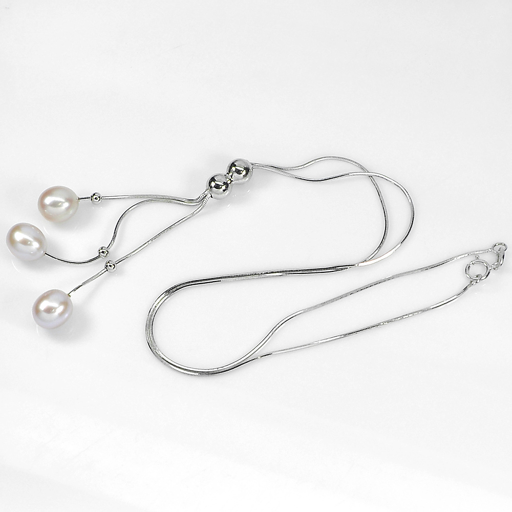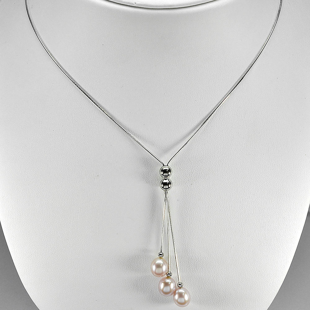 7.19 G. Charming Natural Pink Pearl Sterling Silver Necklace Length 22 Inch.