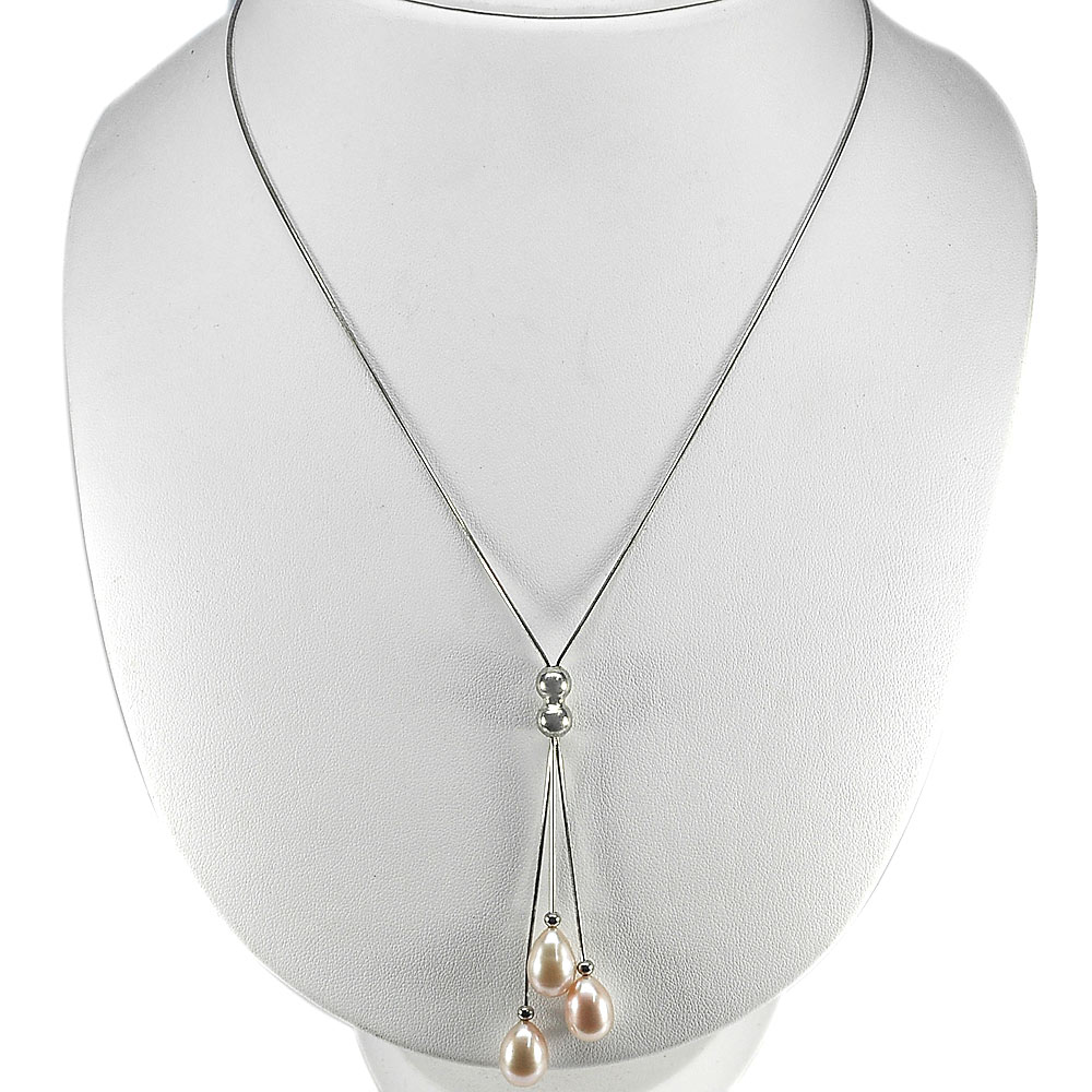 7.58 G.Natural Pink Orange Pearl 925 Sterling Silver Necklace Length 22 Inch.