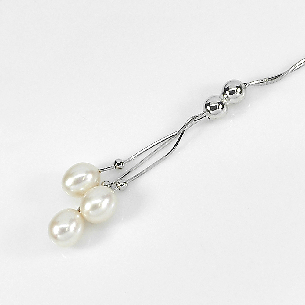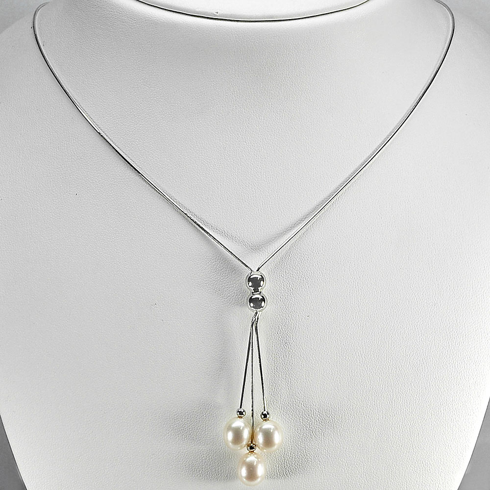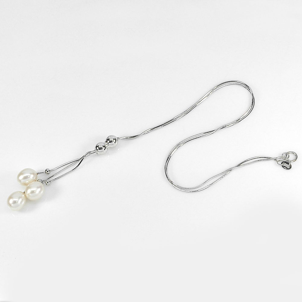 7.11 G. Natural White Pearl 925 Sterling Silver Jewelry Necklace Length 20 Inch.