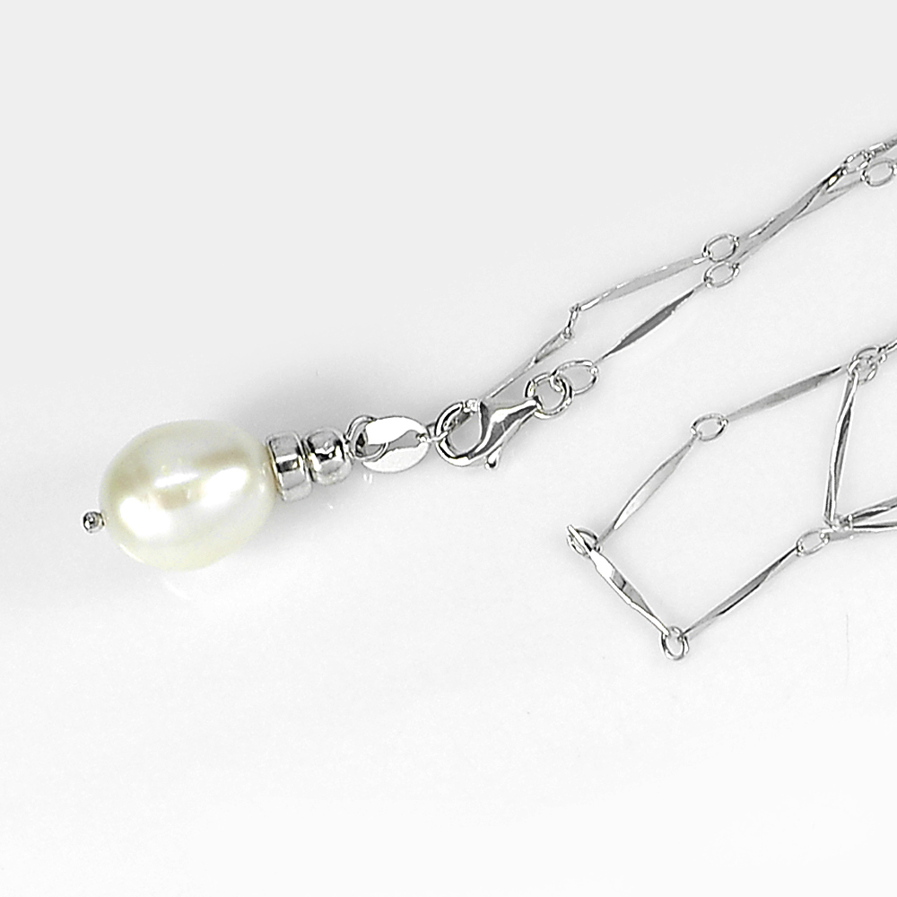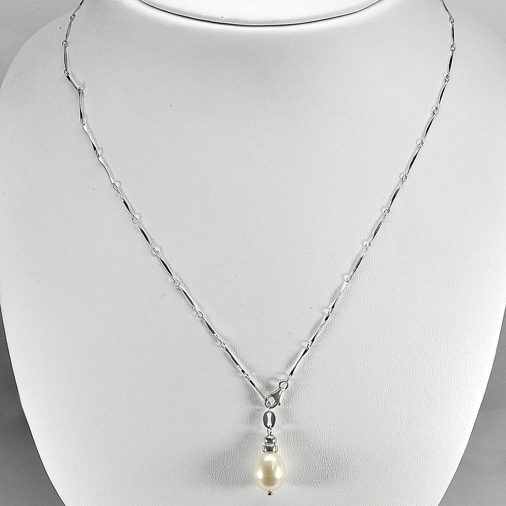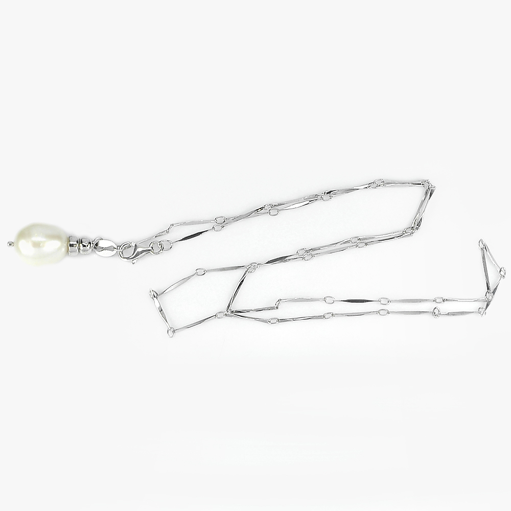 3.70 G. Natural White Pearl Sterling Silver Necklace Length 20 Inch.