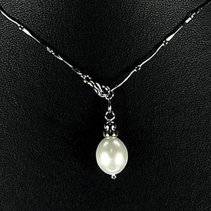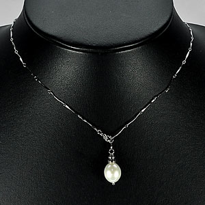 Sterling Silver Necklace 3.66 G. Natural White Pearl Unheated
