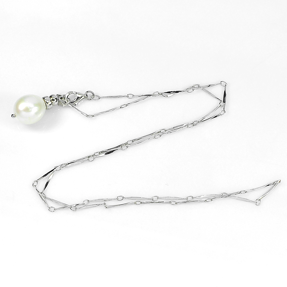 3.62 G. Wonderful Natural White Pearl Sterling Silver Necklace Length 20 Inch.