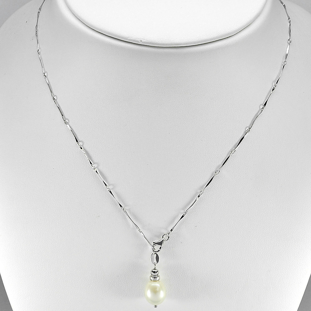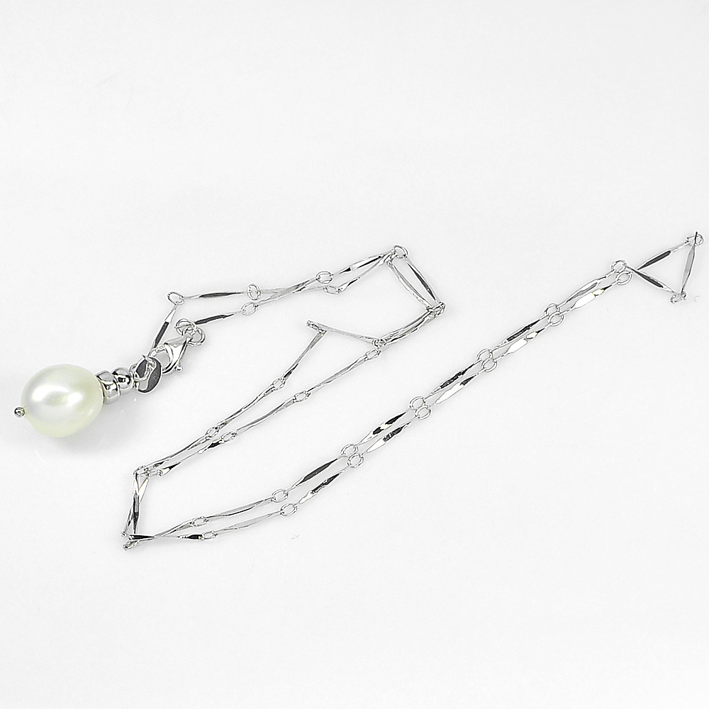 3.70 G. Natural White Pearl Sterling Silver Jewelry Necklace Length 20 Inch.