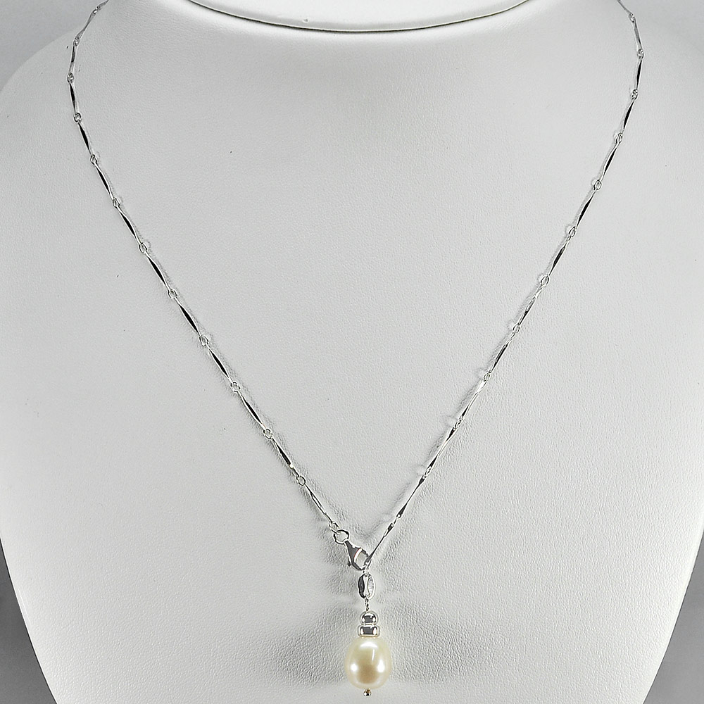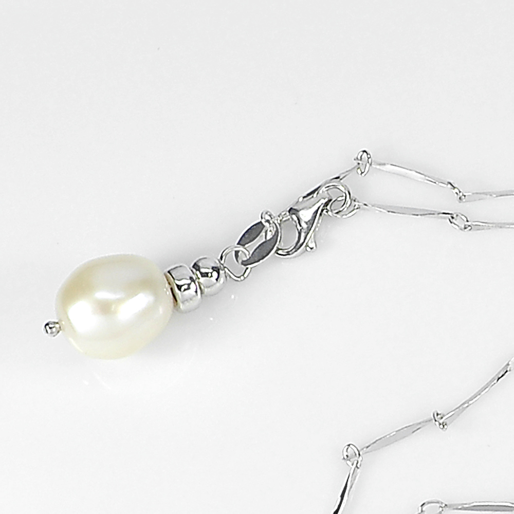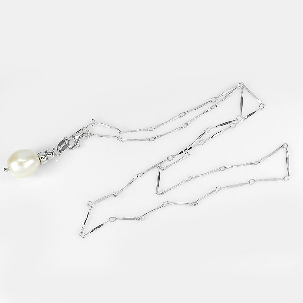 3.52 G. Length 20 Inch. Natural White Pearl Sterling Silver Necklace