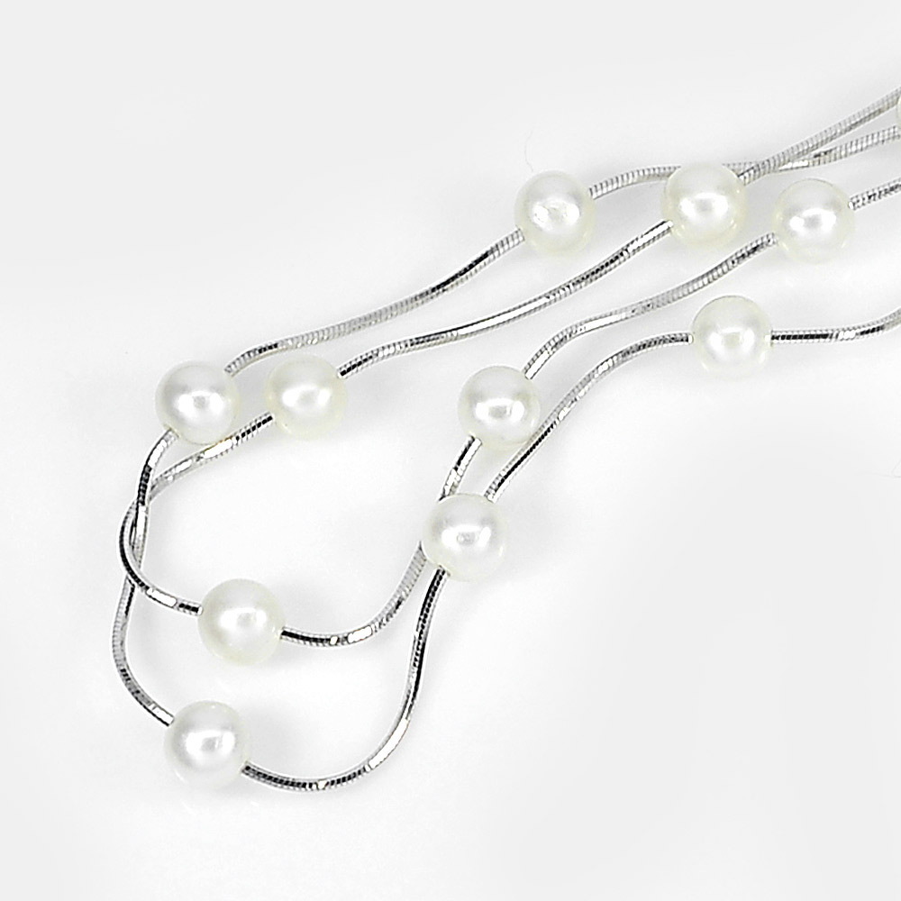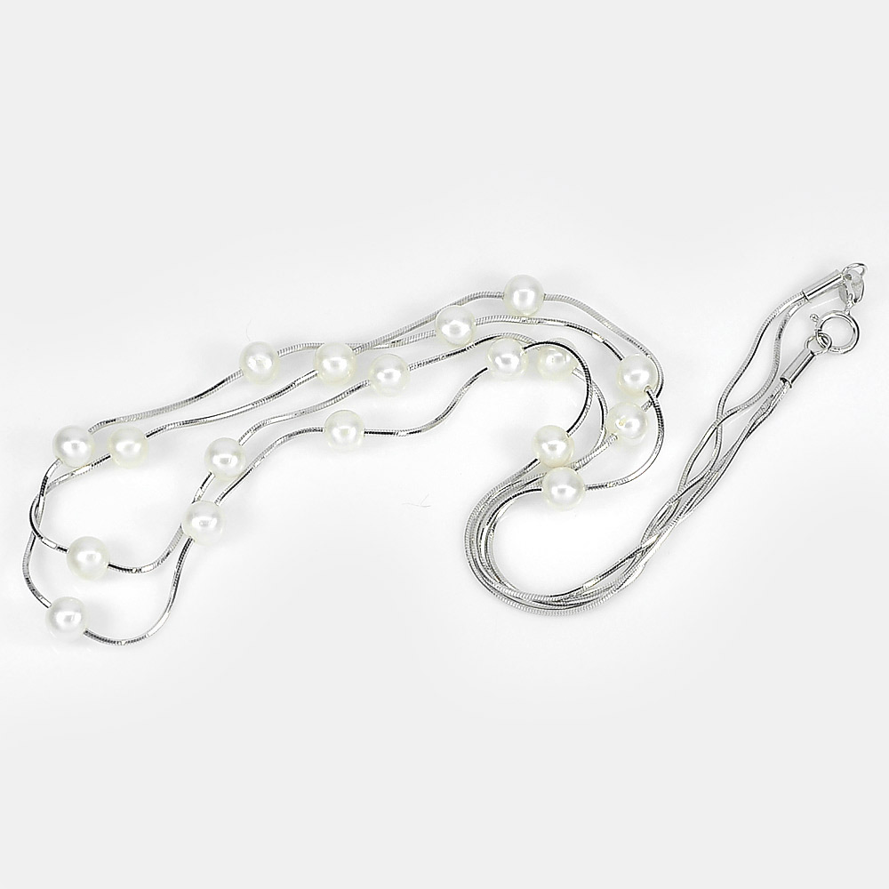 8.39 G. Natural White Pearl Sterling Silver Necklace Length 16 Inch.
