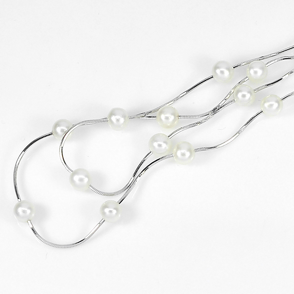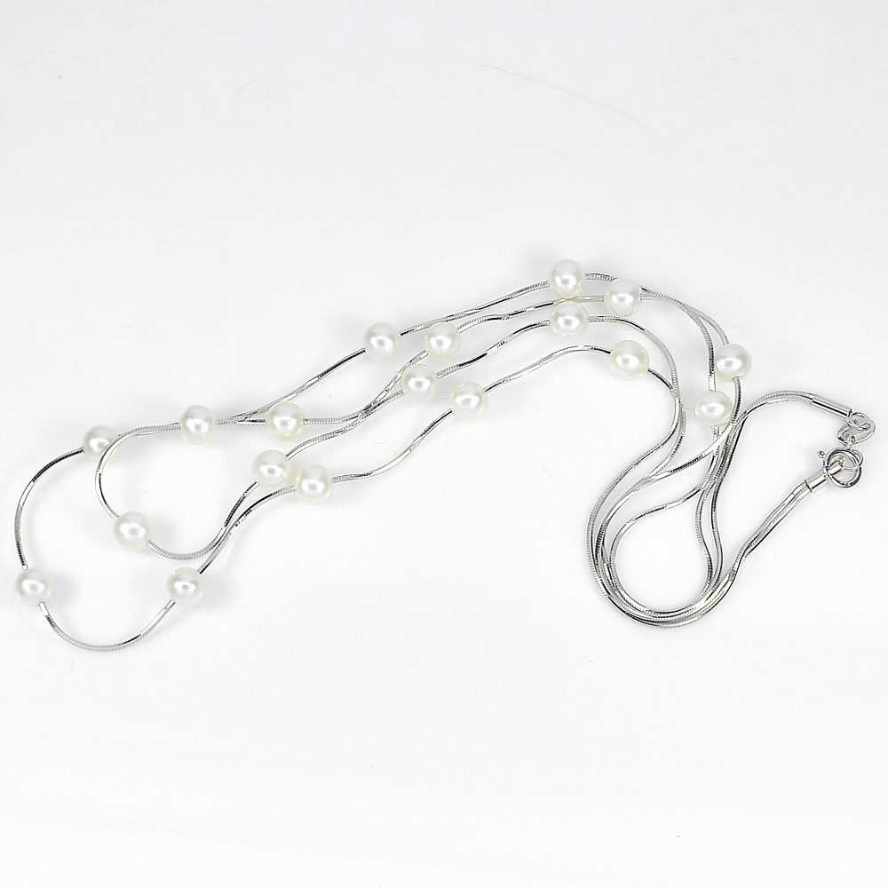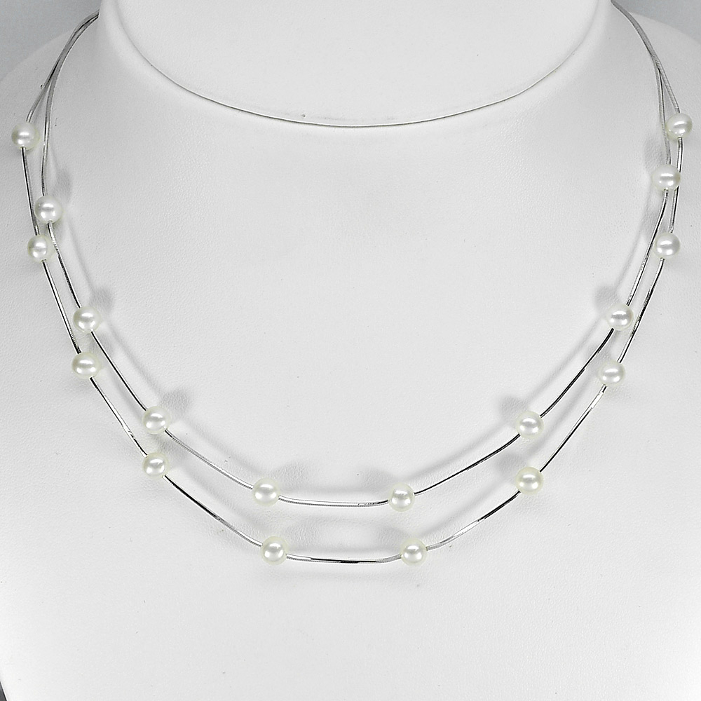 8.74 G. Lovely Sterling Silver Natural White Pearl Necklace Length 16 Inch.