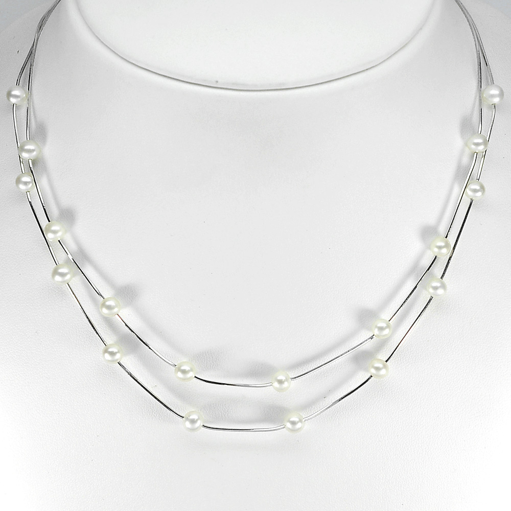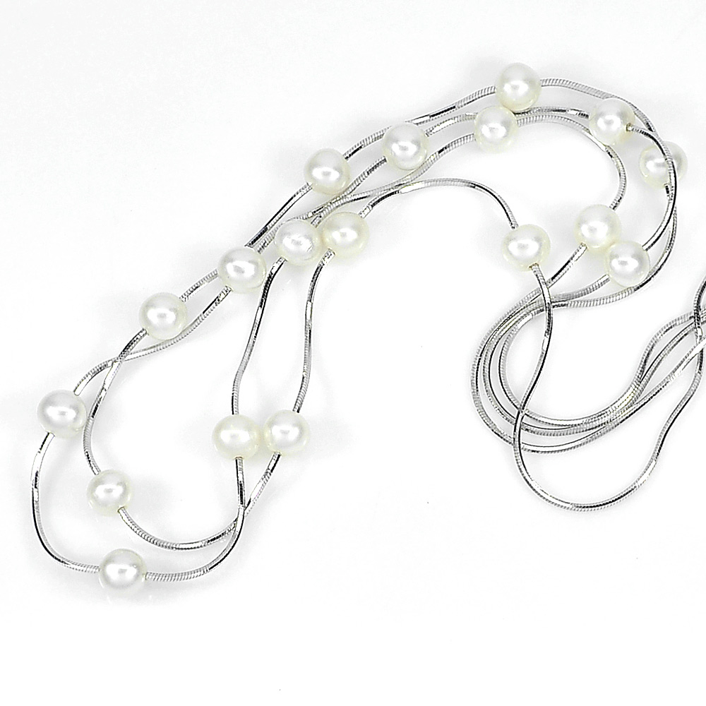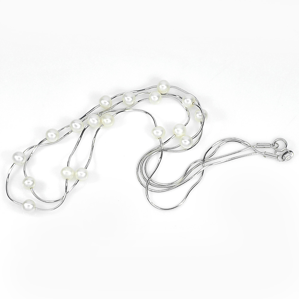 Natural White Pearl 8.78 G. Sterling Silver Necklace Length 16 Inch.