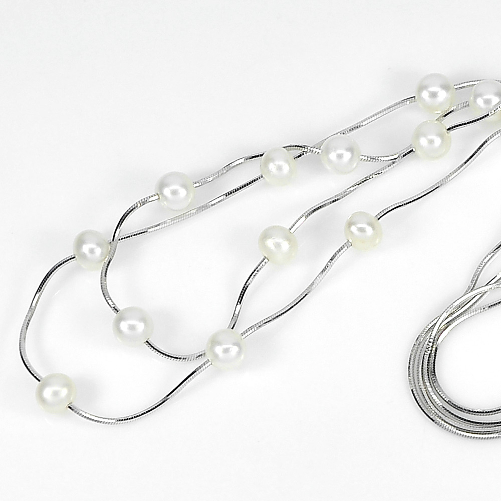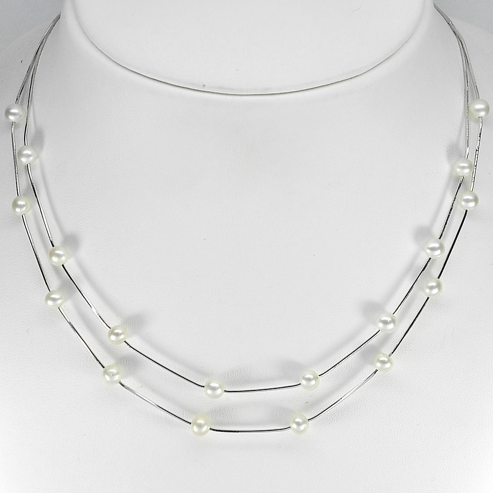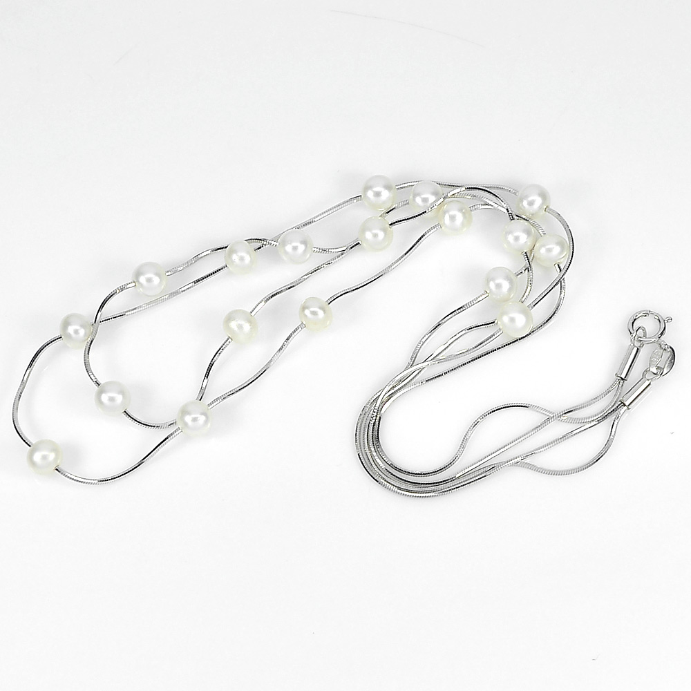 8.73 G. Chaming Natural White Pearl Sterling Silver Necklace Length 16 Inch.