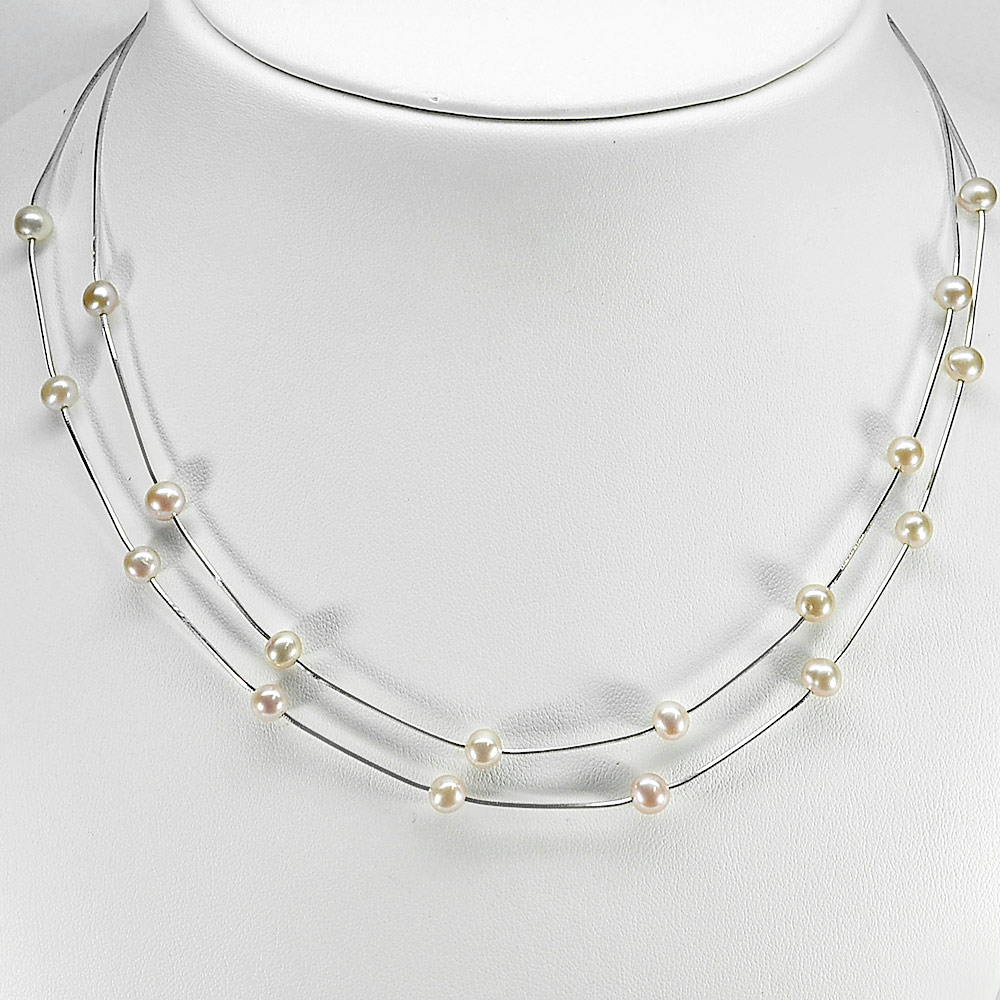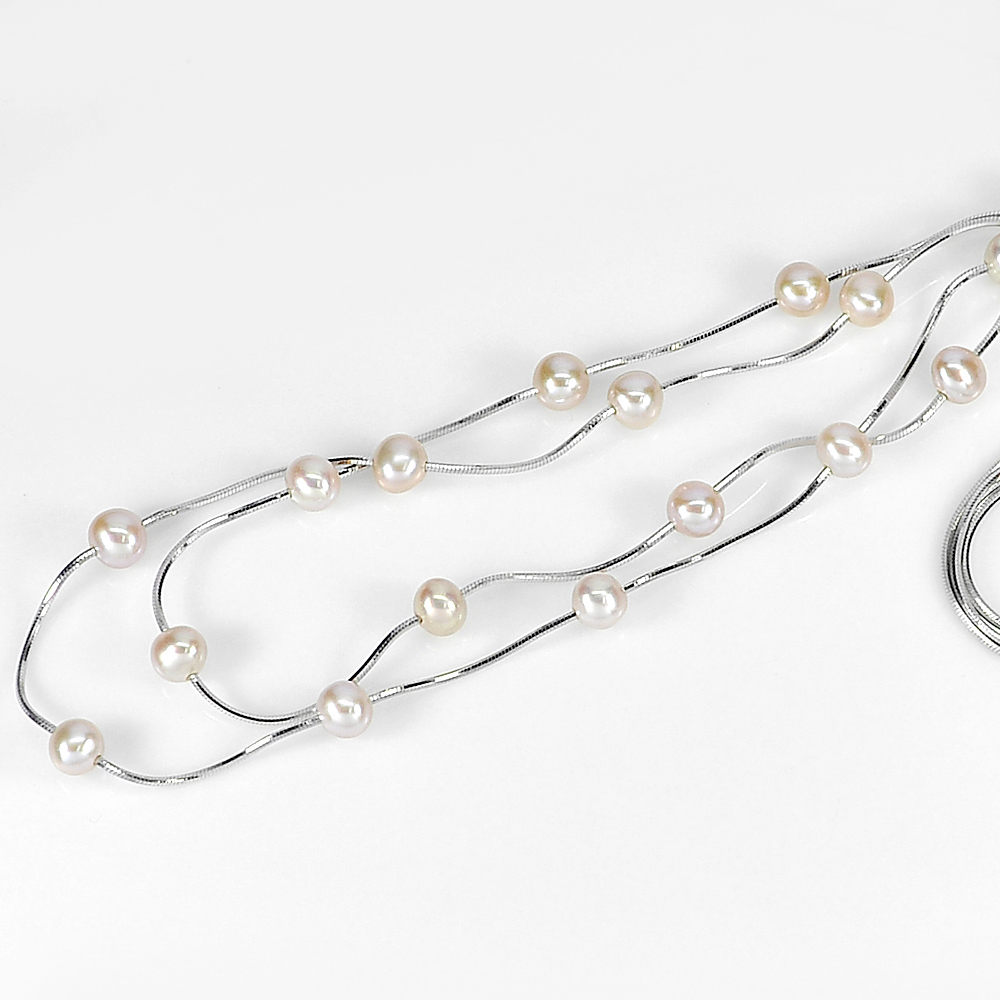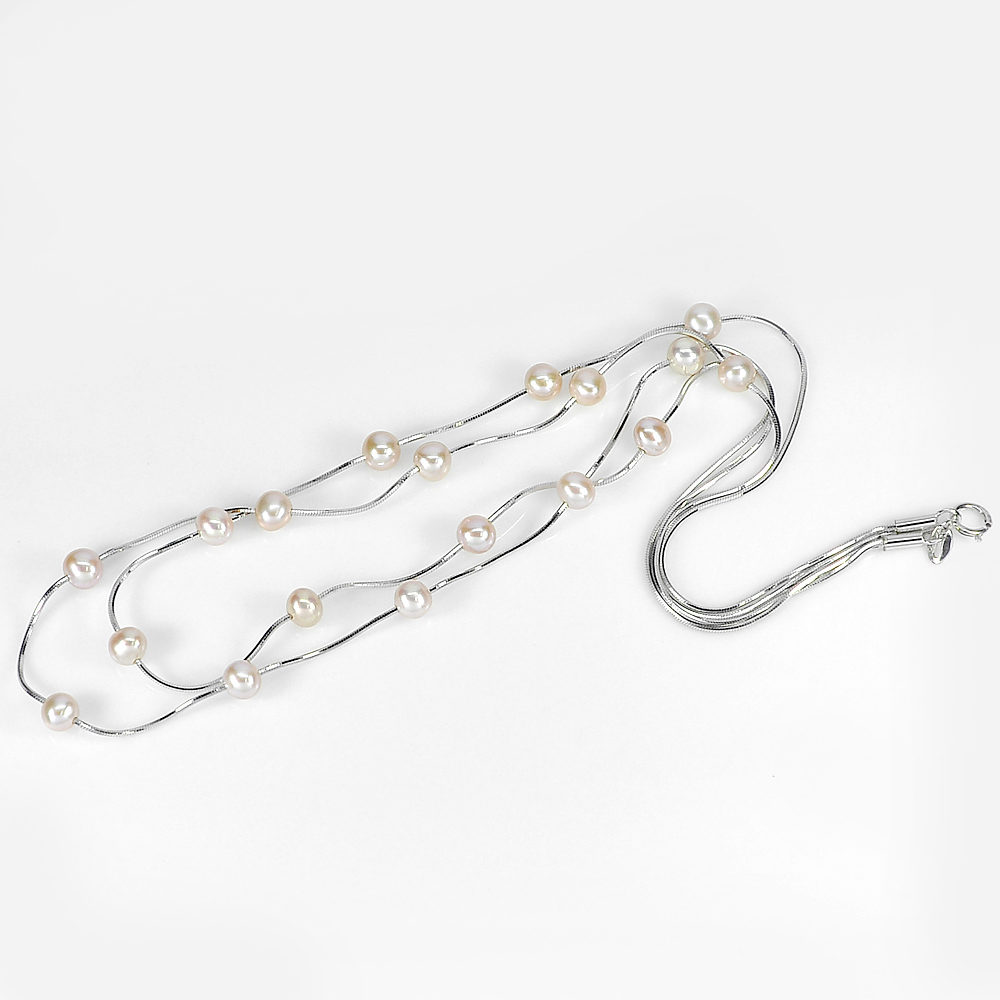 8.03 G. Sterling Silver Necklace Length 16 Inch. Natural Pink Pearl
